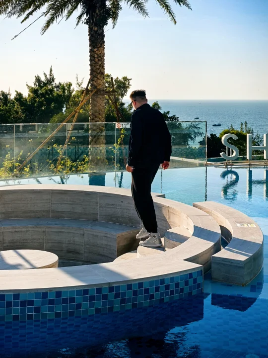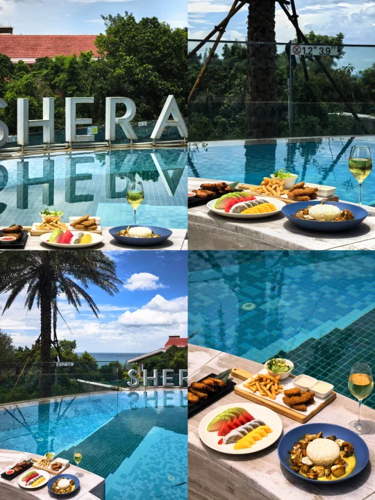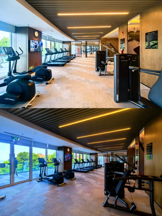 酒店公区主要是一个成人+儿童连起来的户外泳池及儿童乐园。其中无边泳池下沉式岛台借鉴了苏梅岛W和三亚山海天傲途格的设计,拍照很漂亮,午餐如果不热可以从西餐厅出餐端过来,拍照很好看。健身房可以直接看海,全套力健进口设备。