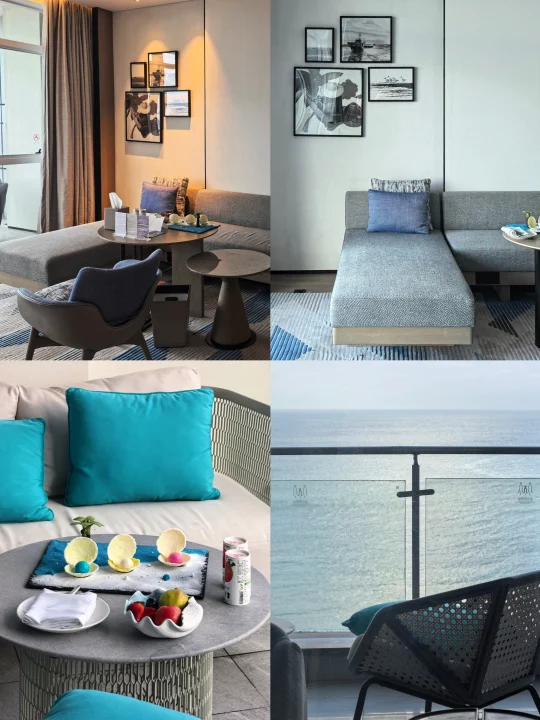 这家酒店总共来过两次,第一次国庆假期去的,这家节假日切记用积分预定,不到2w分对比当时房价接近3k性价比拉满。当天完全满房,前台还是想给我升级,就问我介不介意带儿童装饰的房间,最后给升级了海景亲子房。
