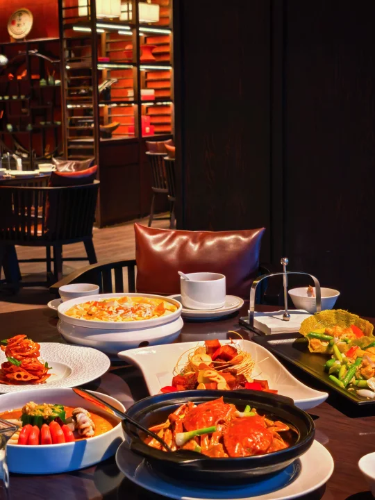 中餐厅出餐不错,主打粤菜和海鲜,并且融入了在地特色,秋季还有单独的套餐。推荐蟹粉豆腐和板栗酱花蟹焖鸡。