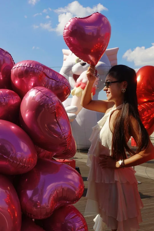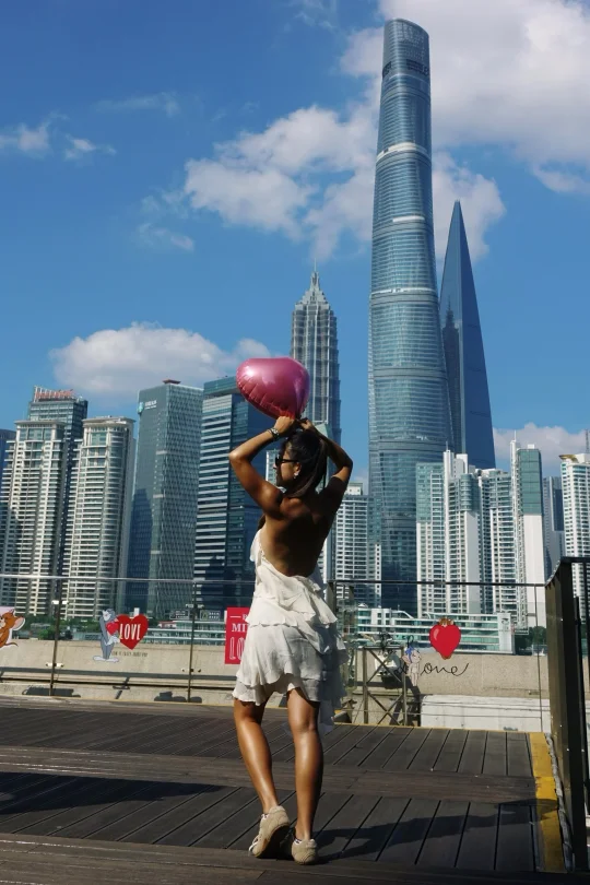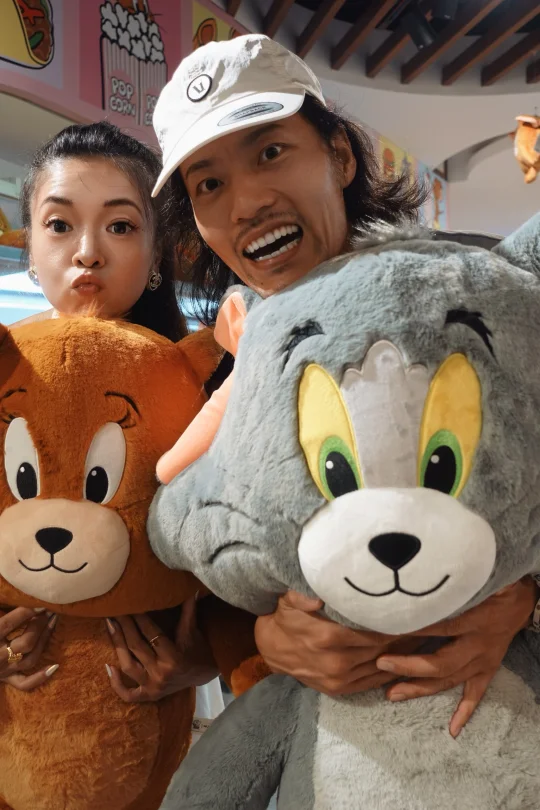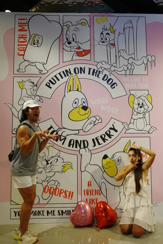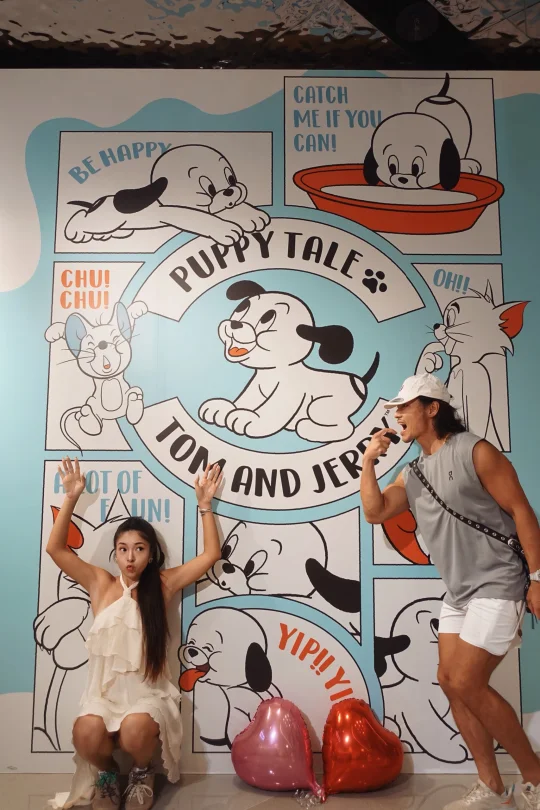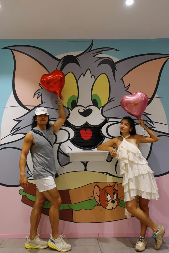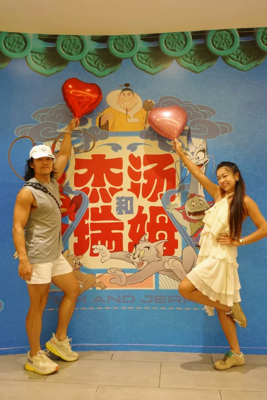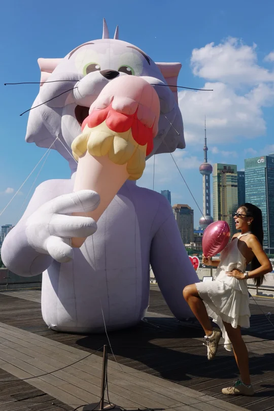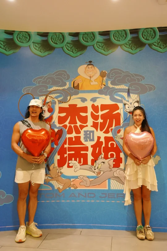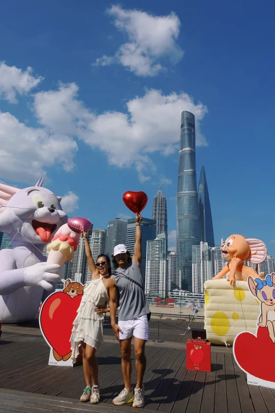 - 装置亮点:巨型汤姆&杰瑞穿上中式七夕礼服,手捧爱心气球墙💖!背景是陆家嘴天际线,夕阳下江风一吹,浪漫直接拉满🌇