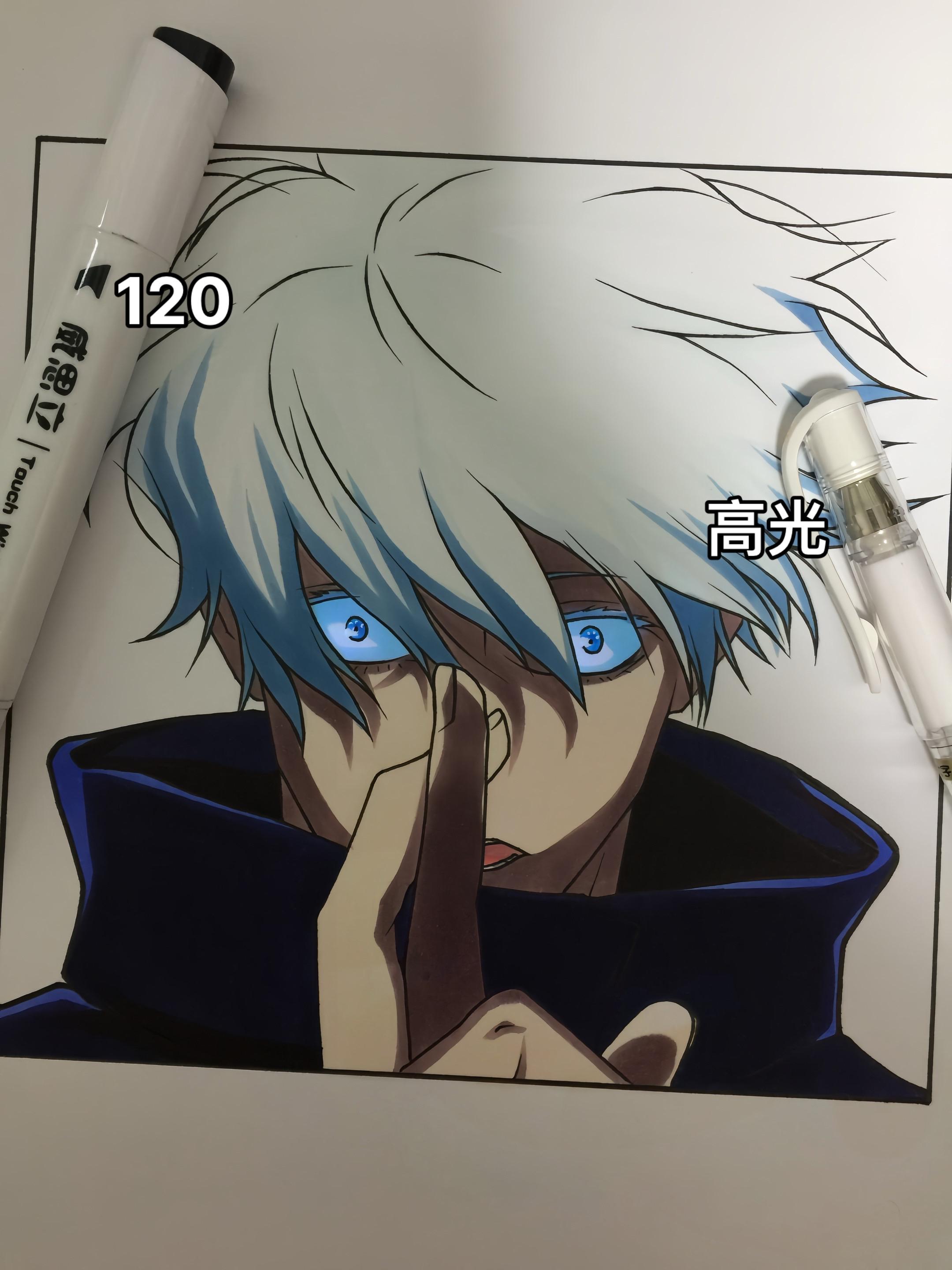 领域展开 无量空处! 五条悟 手绘 咒术回战 儿童画 马克笔:威思立三代