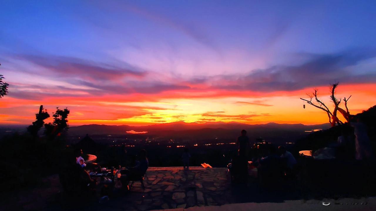 《与夕阳的偶遇》 今天在山上遇见的 夕阳很美 我没用“最”字 风里已飘着的是彩云 人们似乎谈论着云天的绯 我们恰好 被光漫过衣袂 举起杯 问流云醉否 而我比暮色先红了脸颊 看那枚圆 慢慢滚下山峦 是谁收走了这暖玉 残光在衣襟上 慢慢淡成了纱 炉火煮沸 茶烟袅袅 话比山风长 说刚才那抹余晖 如何漫过我们的眉梢 又藏进茶盏的涟漪里 茶是热的 天气是凉的