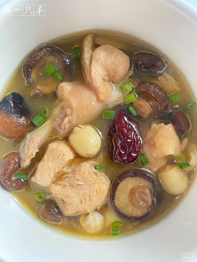 鸡肉200g,香菇干10-15颗,红枣4-6颗,家里有莲子的可以放一把,没有可不放