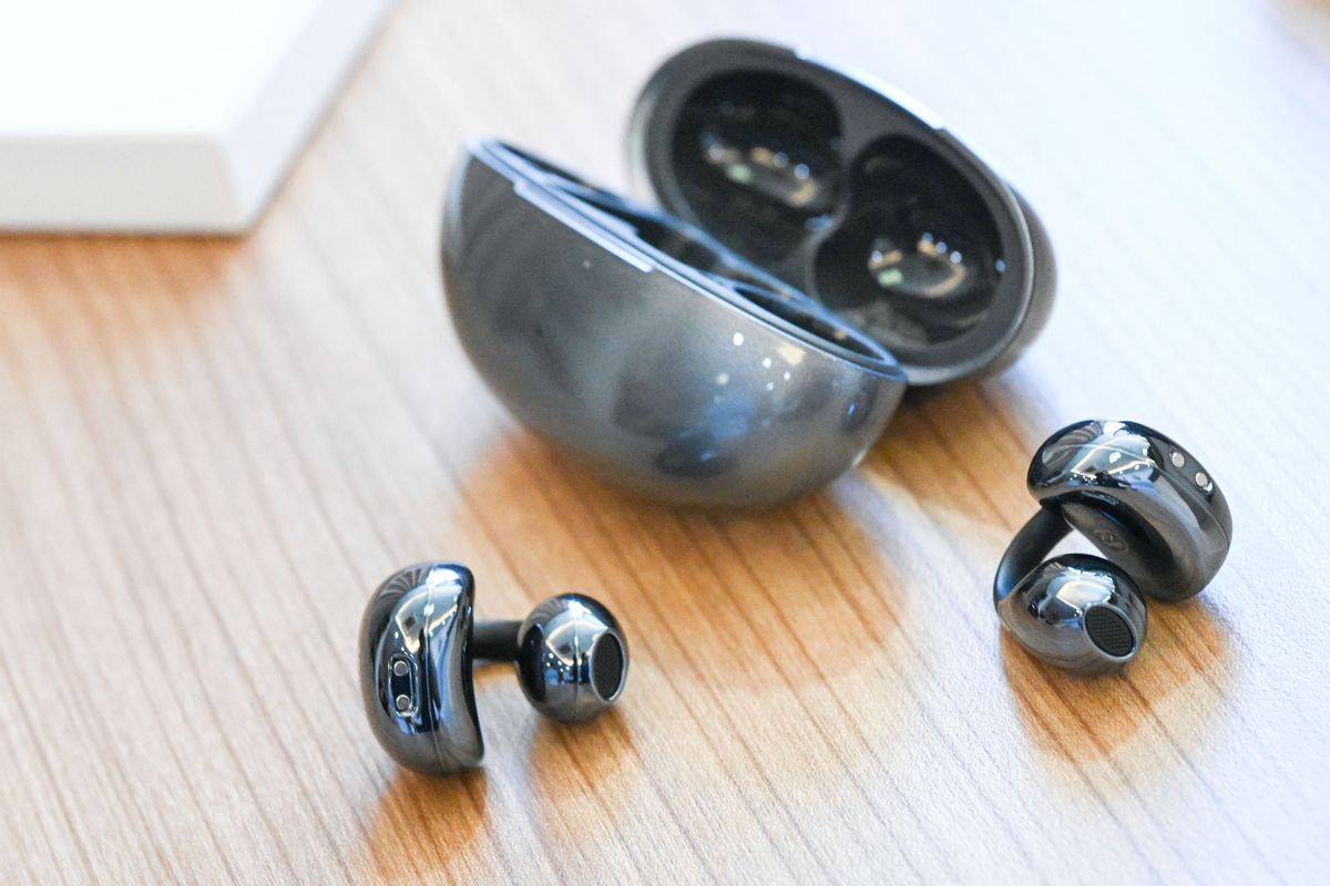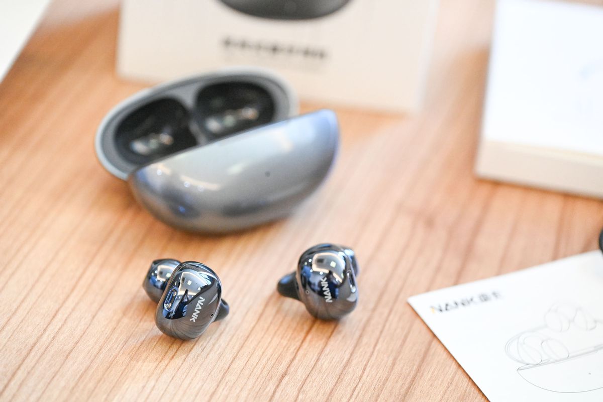 原本以为这类型的夹耳设计的耳机会比较占空间,看到这么小巧的耳机充电舱就知道我想岔了。打开充电舱盖取出耳机,依然是高亮处理的银灰色,满满的科技感,南卡取名为幻影黑色。