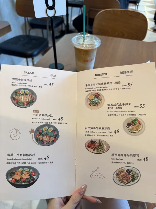 9.9的羊毛必须要薅!长春新开的,也是成都引进的品牌,最近开业三款咖啡💰9.9,美式、拿铁和生椰拿铁,选的生椰,好喝的!! 店里咖啡有特调,哪天会去尝尝。均价合理,比桂林路的特调便宜!!长春特调真的太贵了。。 店里还有简餐,沙拉、意面,饭类都有,均价四五十,适合一人食。 都挺好的,就是可能因为门头很好看,赶上门口拍照的有点多⋯