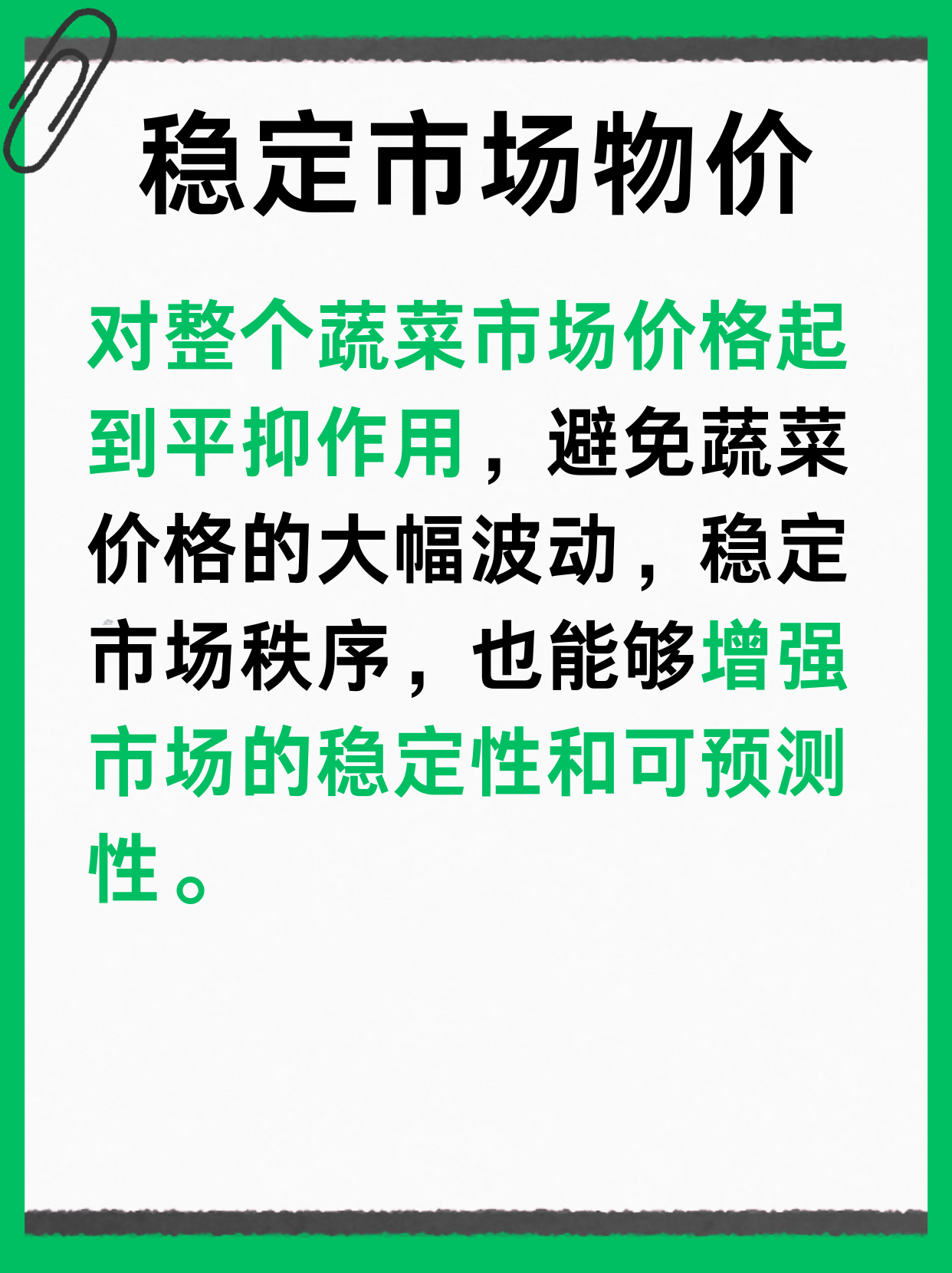 一、减轻生活负担 二、稳定市场物价 三、提升社会和谐 四、带动消费增长 五、促进蔬菜流通