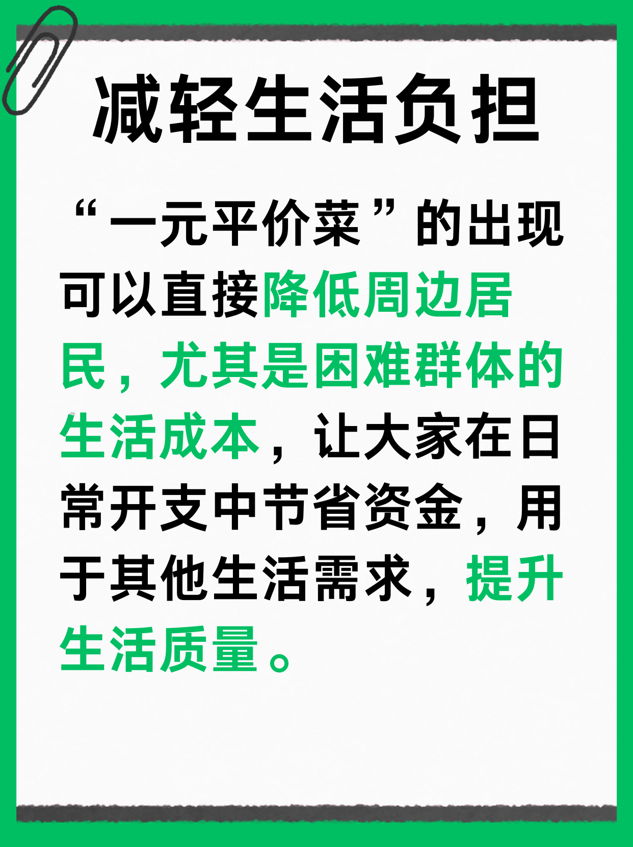 一元平价菜带来的积极影响