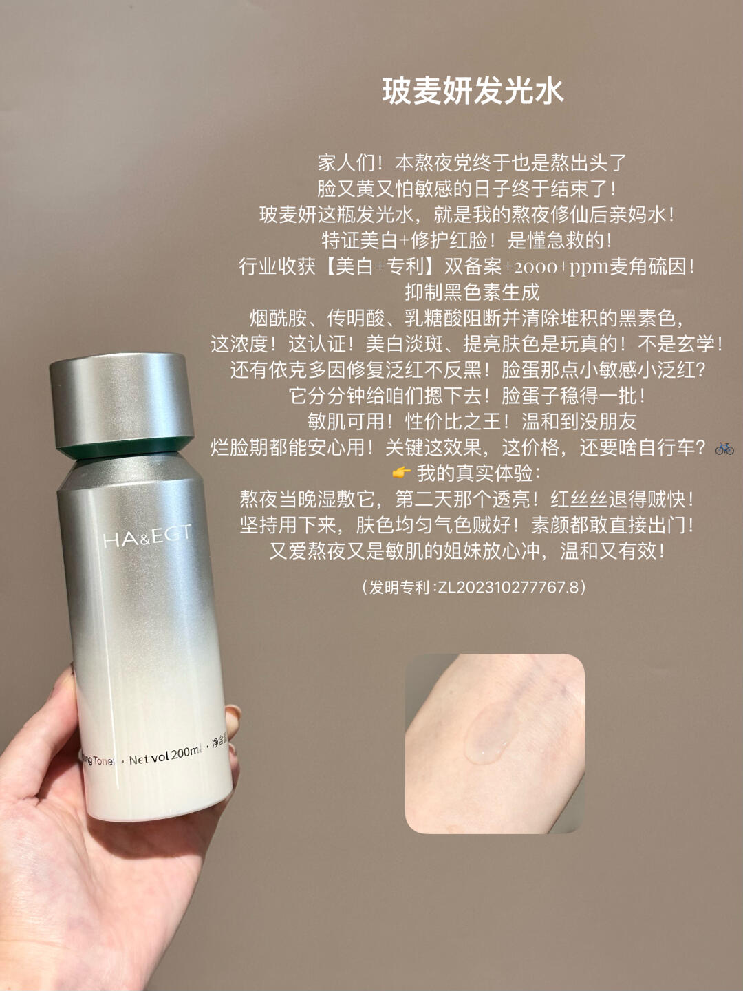 👉🏻发光水:行业首获美白【特证+专利】双备案的2000+PPM麦角硫因精华水,祛黄提亮,敏肌可用(发明专利:ZL202310277767.8)