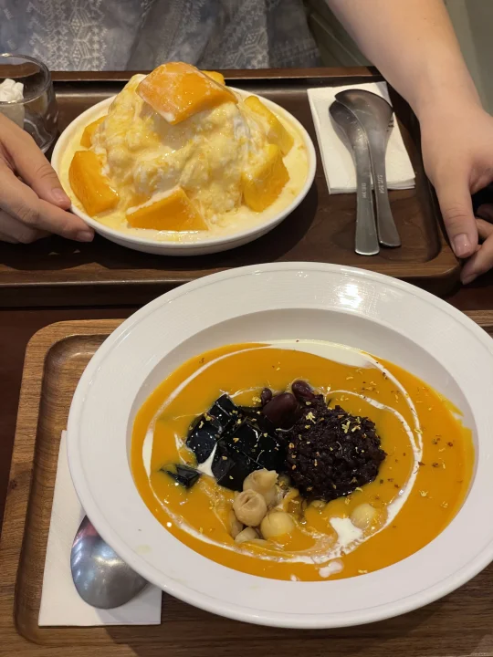 超舒服的小店,人气旺旺的💕 随手一拍都很有ins感,木质感觉温馨又舒服 糖水真心好吃,不同于别家,他家保持了食材本身的味道,🥭芒果也好,椰汁也好🥥,保留了味道,也因此有挺多不同的声音的。 「吃点好的吧」选了一个椰汁大满贯,外加一个芒果绵绵冰!duang大的一个💛好吃~ 对啦!秋冬还会有热热的糖水哦!