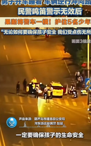 这个民警必须让他火!”辽宁葫芦岛,男子开车睡着,车辆逆行冲向路边的几名少年。关键时刻,一辆警车路过,民警果断将警车一横,主动让失控车辆撞上警车,护住了5名少年!民警:“无论如何要确保孩子安全,我受点伤无所谓!”