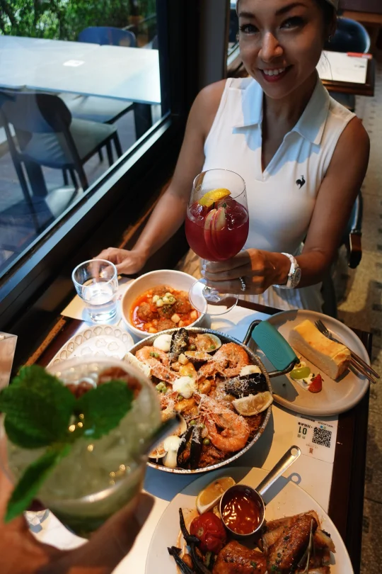 🍴美食推荐: ▪️西班牙海鲜饭 超大份!青口贝+大虾+鱿鱼圈铺得满满当当 米饭吸饱了海鲜高汤 每一口都超满足 ▪️伊比利亚火腿配蜜瓜 咸香火腿+清甜蜜瓜 经典搭配永远不会出错 ▪️蒜香橄榄油虾 Q弹鲜虾浸在香浓蒜油里 法棍蘸着吃绝了!