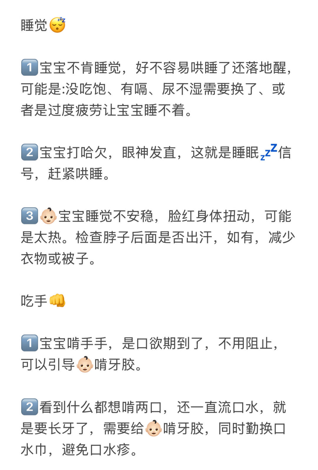 3️⃣👶🏻宝宝睡觉不安稳,脸红身体扭动,可能是太热。检查脖子后面是否出汗,如有,减少衣物或被子。