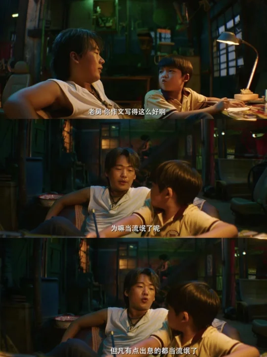 他那天津话一出口更绷不住,嘴硬“我是绑匪!”转头就给外甥擦鼻涕,被全家集体装傻整得没脾气,二姐揣着煎饼装傻“啥绑票?我家娃跟舅遛弯呢”,黑帮老大林雪带着小弟在澡堂子讲段子,连天津街景的复古霓虹和煎饼摊香气都成了笑点催化剂。但笑着笑着就酸了,马飞被外甥问“我是好人吗”时泛红的眼眶,撕开了被原生家庭伤害的伤疤,那句“户口本还在抽屉里等你”直接让人破防。