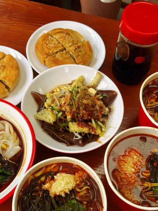 姐妹说一口童年。真的嘎嘎香 妥妥的回忆的味道👅 隔段时间不吃就超级想念 辣椒🌶️ 绝了 那桶老汤全都喝完‼️ - 老陕味道的热米皮也贼好吃,现做现泼辣子太香啦! 裹满酱汁的味道真的很不赖!! - 麻辣烫对门的铁板鱿鱼我在店里都闻到香味啦 555~又是沉醉在碳水的一天~