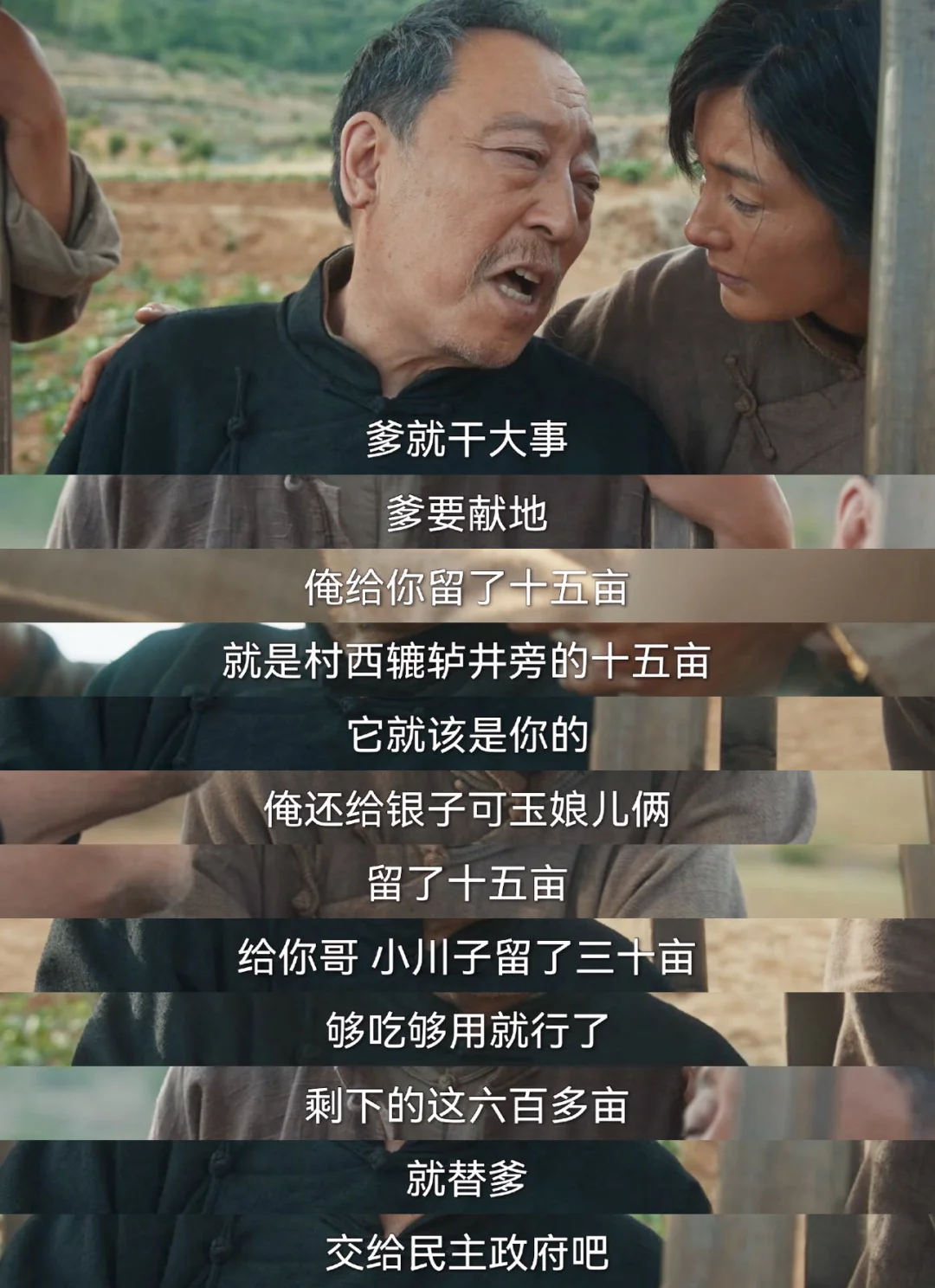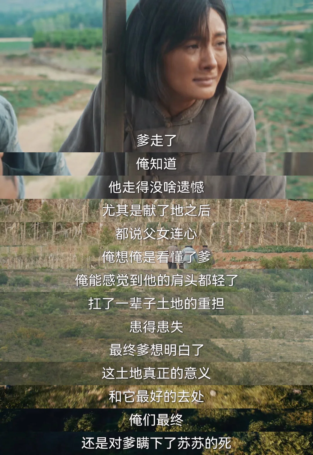 俺要哭晕了[哭惹R]大眼泡子爹最后也在他深爱的这片土地上咽了气[哭惹R] 连银子都说,“一到地头病就好了一大半” 宁学祥终于跟绣绣说了软话,懂得绣绣这么多年一直都在帮自己[哭惹R]宁学祥也终于做出一个重大决定,给家里人留下够吃喝的一些地,其余的六百多亩全部交出去!!! 可金也回来了,儿子女儿女婿一起推着宁学祥在田间走着 宁学祥嘴里念叨着苏苏和郭龟腰,念叨着儿女们要好好种地,“你心里有地,土地才会对你好”😭😭😭 交代完一切,听到绣绣的回应,宁学祥咽了气… 扛了一辈子土地的重担终于卸下了[哭惹R]