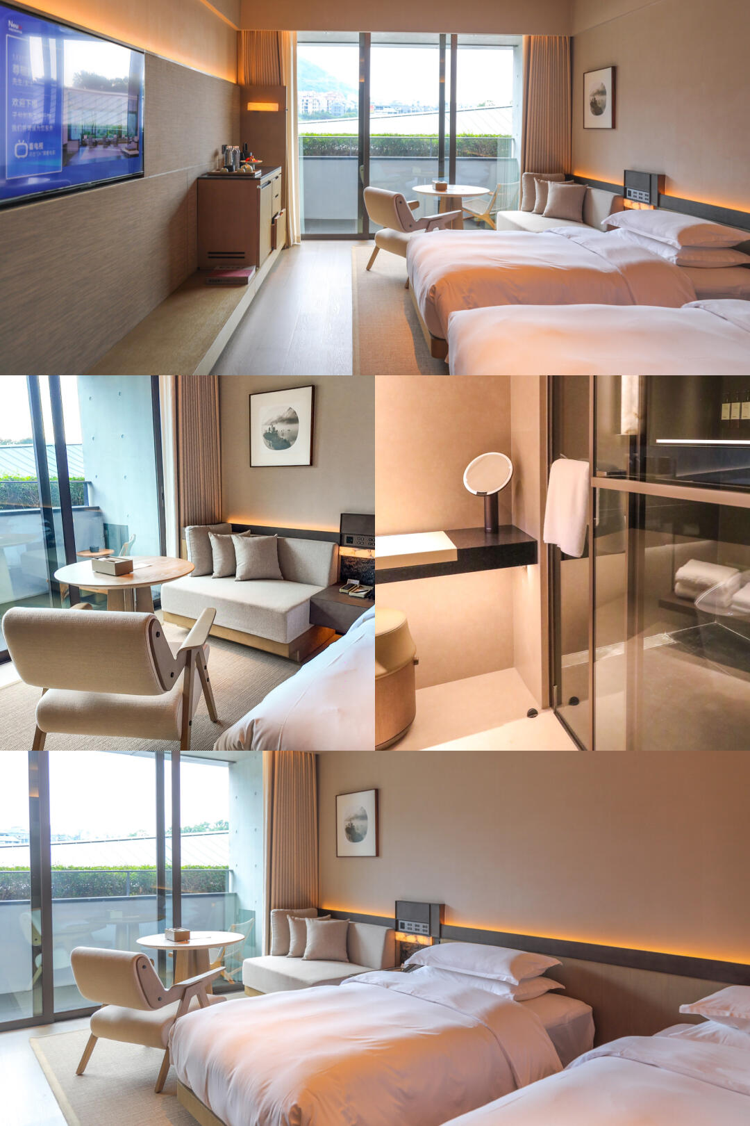 🛏️房间更是惊喜,全景落地窗把湖光山色框成动态壁纸,躺在慕斯床垫上就能看风景,这才是度假的正确打开方式!