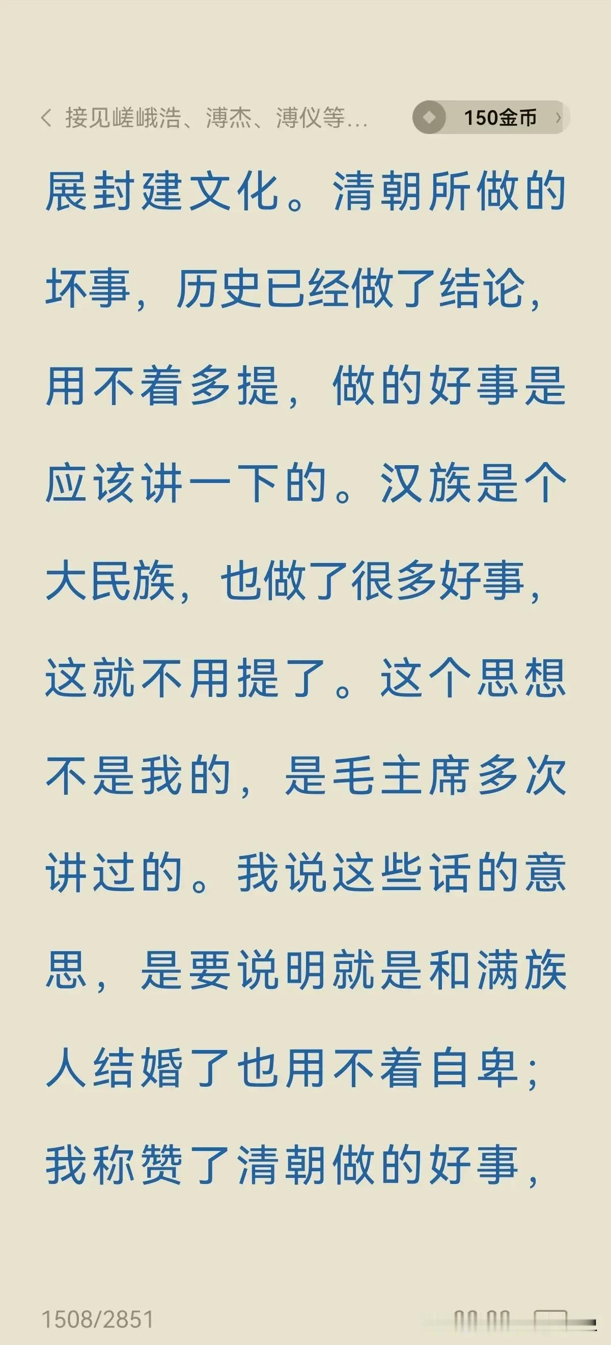 一些自媒体为了博流量真是毫无底线,日本人说的元清非中国论直接当做圣旨到处传播,反观毛主席和周总理等国家领导人的谈话缺视而不见。 60年代,中印就边界问题进行谈判,谈判当中周总理多次使用元朝时期中国就将西藏地区给纳入了版图。 1960年,毛主席和老舍先生谈话首次承认中国版图就是从清朝继承过来的,并对康熙帝评价非常高。 1961年,周恩来总理会见溥仪的时候,用辩证法将清朝的功过是非说的是明明白白。 由此可见这些人绝对是某境外势力支持下公开和国家唱反调,想分裂中国各民族之间的关系。 任何正直有良心的中国人都会将伟人的谈话牢记心中!