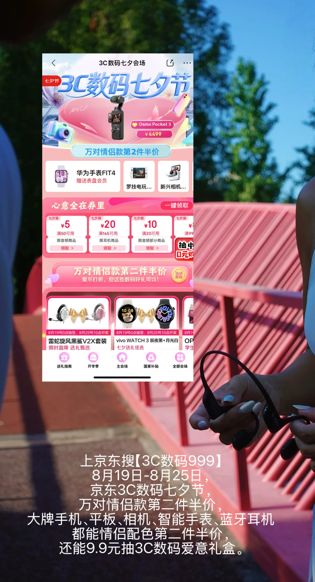 现在上京东搜【3C数码999】8月19日-8月25日,京东3C数码七夕节,万对情侣款第二件半价,大牌手机、平板、相机、智能手表、蓝牙耳机都能情侣配色第二件半价,还能9.9元抽3C数码爱意礼盒。同款韶音耳机第二件半价!两件原价2196, 两件现在活动 1647 ,怒省549! 还能抽限定礼盒🎁这次要好好夸夸会过日子,会挑礼物的男友[偷笑]