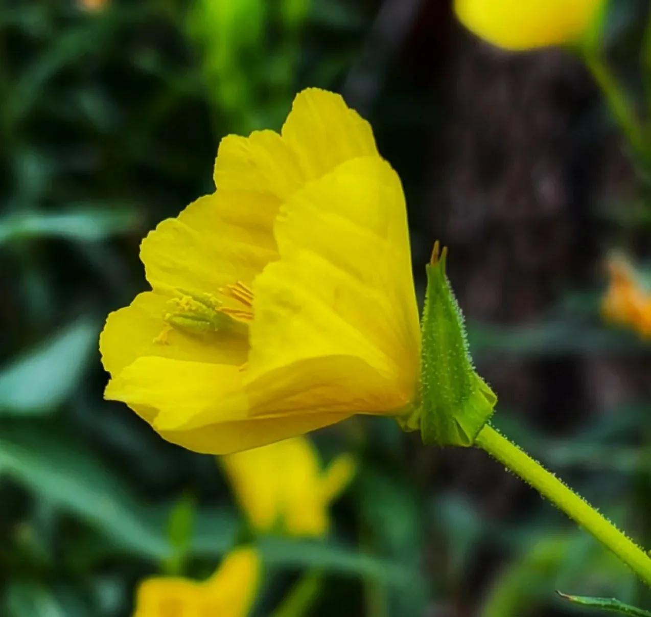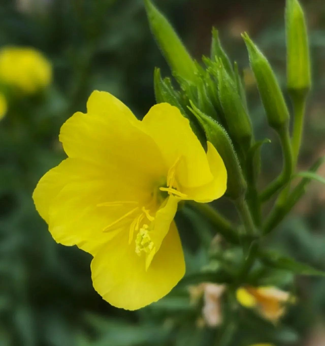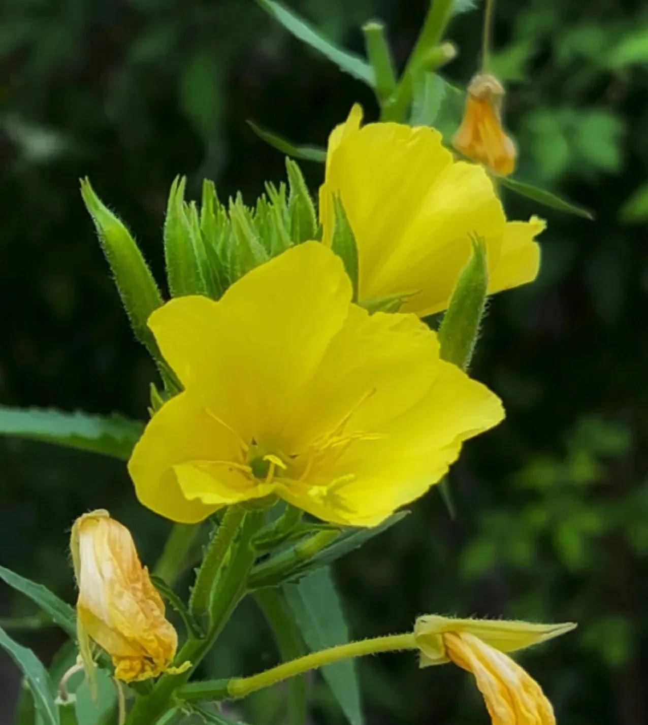 喜欢夜间开花的黄花月见草 晚饭后去小区对面小公园散步,浅浅的夜色中,公园里一种黄色的花在夜色中开的热情奔放,它有个听起来充满神秘与浪漫的名字黄花月见草,其别名山芝麻、夜来香。 黄花月见草是一种柳叶菜科植物,原产欧洲,1860年由英国引入我国。树高可达1.5米,花期5-10月,花瓣金黄,因其喜欢在傍晚月光下绽放花朵而得"月见草"之名。 黄花月见草花开花繁叶茂,花大色艳,花期长,非常适合配植于园区花坛之中,作花丛种植,夏秋之夜花开清香飘逸,令人心情愉悦。 黄花月见草不仅花开艳丽,而且可作为油料作物,其种子含油20%~28% , 油中不饱和脂肪酸约占70%~80% ,油中γ-亚麻酸的含量达8%~9%,被称之为本世纪发现的最重要的营养植物。 月见草的种子还是一味中药,收录于《全国中草药汇编》、《中华本草》等药典中,记载其有祛风湿、强筋骨之功效。月见草油还被制成护肤油、皮肤营养油及植物性化妆油乳剂等高端美容产品。很实用。 #记录我的2025#