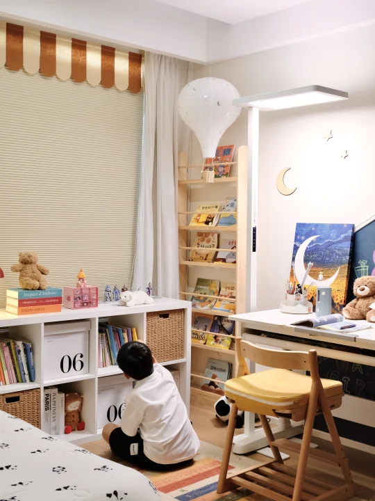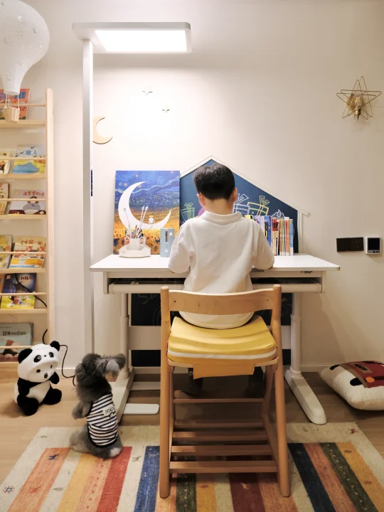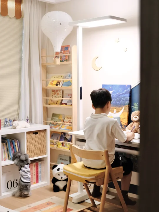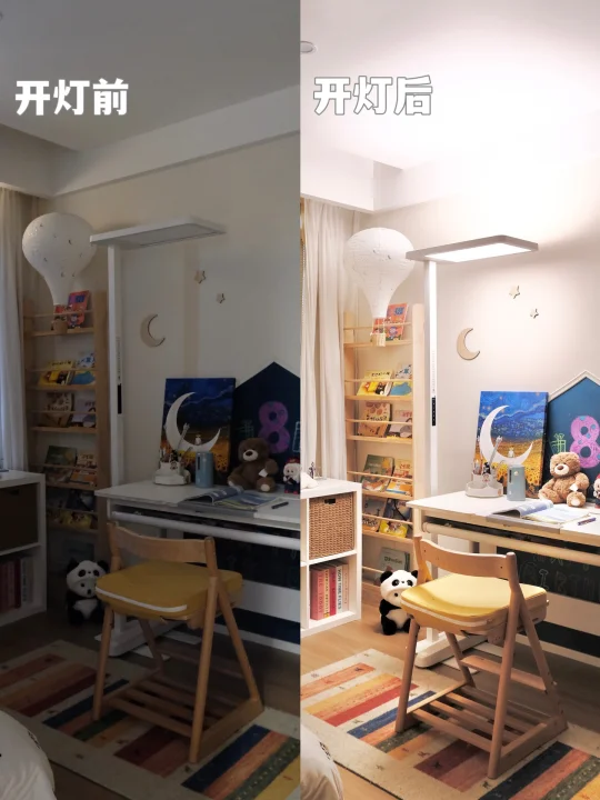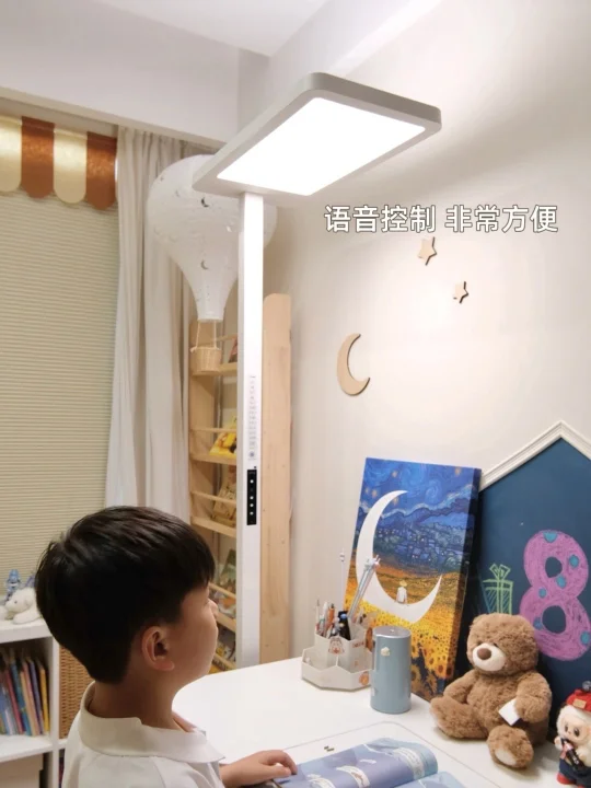 👦🏻 原本9平米的儿童房 只够放下一张1.5的床 就没有多余的利用空间了 改造后的儿童房 纳入学习区 孩子也是有他自己的小天地啦🎉 ⁻ 无主灯的儿童房 对于学习环境光线是不够的 为了让孩子有个健康的护眼环境 👀 正好开学了 立马给孩子配上护眼台灯~ 做足了功课 入手了欧普清澈光护眼落地灯悦瞳 L2Pro 真的是性价比之选啦🥰 ⁻ 欧普毕竟是做了29年的老品牌了,品控一直值得信赖 它这款在护眼方面更是专业,是联合武汉大学教授定制的清澈光全光谱,升级版全光谱2.0 蓝光峰值降低30%、青光提升2.5%、红光提升7.5% 不仅提升了显色度还同时提升了色彩分辨度提升65.8%,色彩舒适度提升10.4% 光源舒适清晰、还原书本自然色彩 即便是孩子学习看书久了也不会感到眼疲劳 ⁻ 之前还担心就一盏灯房间是不是还不够亮 到手之后完全打消顾虑 整个房间都被照得亮堂堂🤙🏻 它的光通量高达9707lm ,光效提升 62% 可照亮 30平方米空间,360度立体发光 光线均匀覆盖全屋💡 ⁻ 以前娃看书画画,总抱怨手影晃眼~ 自打换了这盏灯,终于告别阴影干扰! 微极芯+聚光双环光设计,光线柔均匀,均匀度达到了1.1,超国标163%,影子淡化效果提升163%,淡到几乎看不见,他自己都说“像在白天自然光下写字”✍️ 防眩光做得特别贴心,UGR低至11.8,没蓝光也不闪~连续看两小时绘本眼睛也不累,老母亲终于不用唠叨“离远点”啦! ⁻ 最惊喜是语音控制!不用联网、不用动手,他喊一声“小欧,开灯”,立马亮起来~调亮度也不用找我,自己动动嘴就搞定,超有成就感😄 底座才8mm,比手机还薄!想在哪学,就挪到哪~💨 7.2万小时灯珠寿命,算算真能陪到他长大~一盏能用十几年的灯,而且首批5A级质量分级认证、CQC、CCC、南德TUV等权威认证早就到手啦!性价比这块拿捏了🤏🏻 一个好的学习环境真的可以大大提高孩子的学习效率🎉