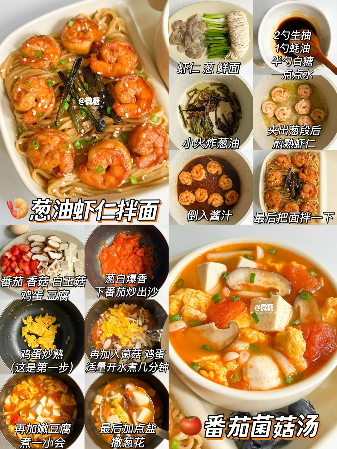 DAY 6: 虾仁葱油拌面➕番茄菌菇汤