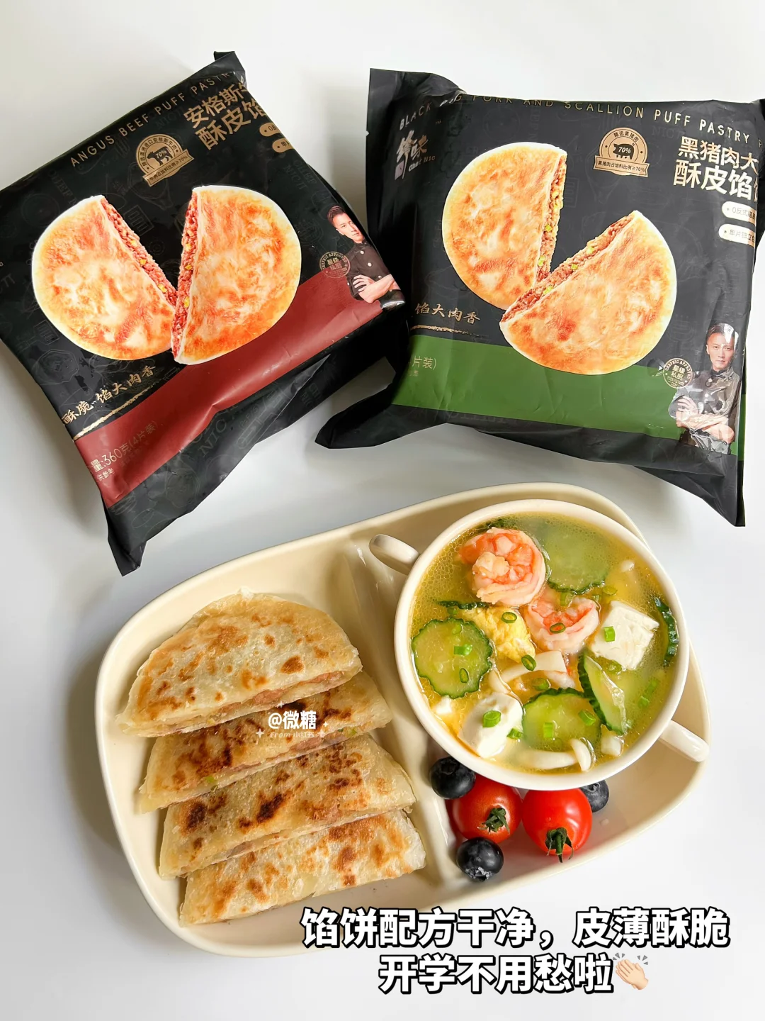 馅饼咬下去外皮酥脆,满满的肉馅🤩牛肉馅是 精选澳洲安格斯牛臀肉🥩黑猪肉大葱馅是选用冷鲜黑猪前腿肉🐷馅料肉含量≥70% !而且每一片都是独立包装,干净卫生!配料也很干净✅0反式脂肪酸,大人小孩都能放心吃。
