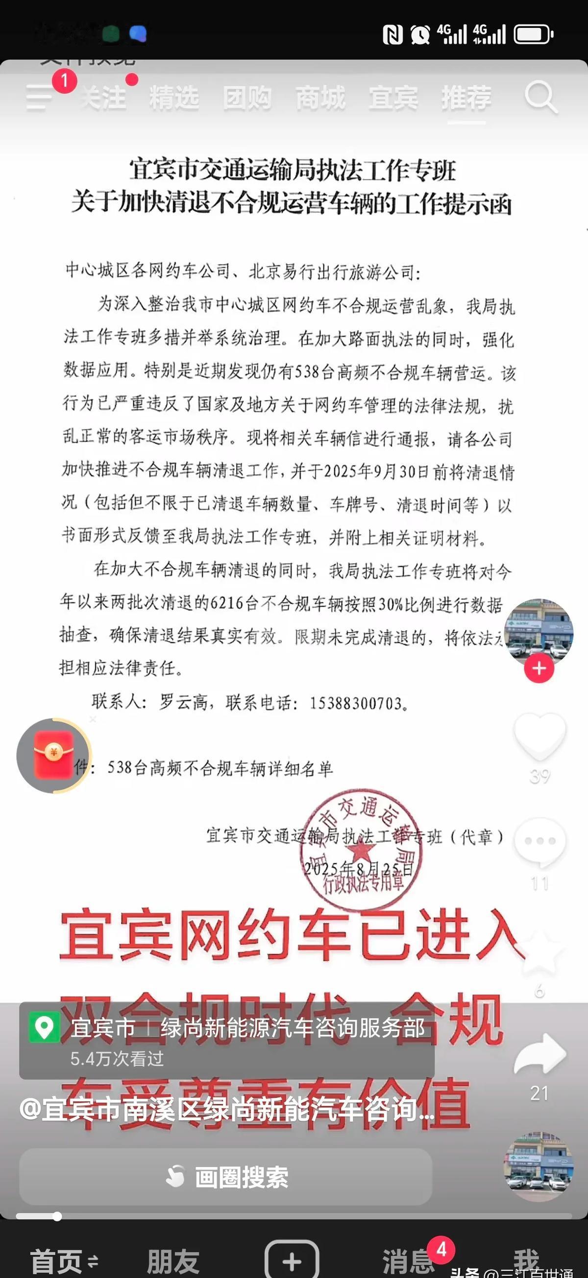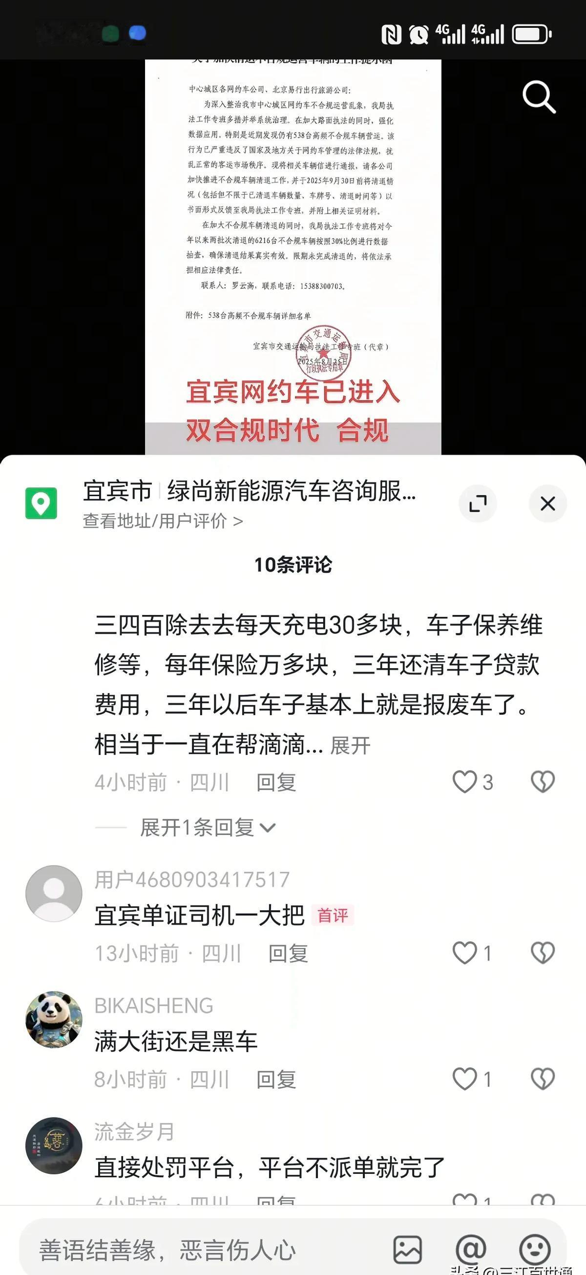 538台网约车,9月30号前必须消失。 又一批饭碗,说没就没。 宜宾今年已清退6216台,加上这批,数字逼近七千。 通报里冷冰冰,背后却是6000多名司机,一半曾是失业者。 他们怕查,更怕没收入。 一张运输证,卡住了太多人。 合规当然重要,安全不能打折。 可他们并非坏人,只是被生活逼到方向盘前。 有人建议:执法之外,能不能给培训、给岗位、给缓冲? 城市不只讲效率,也讲人情。 9月30号之后,愿路更宽,心更暖。