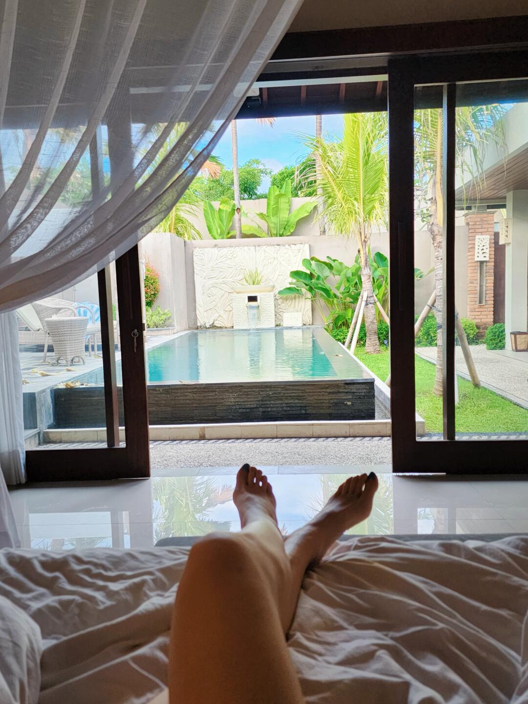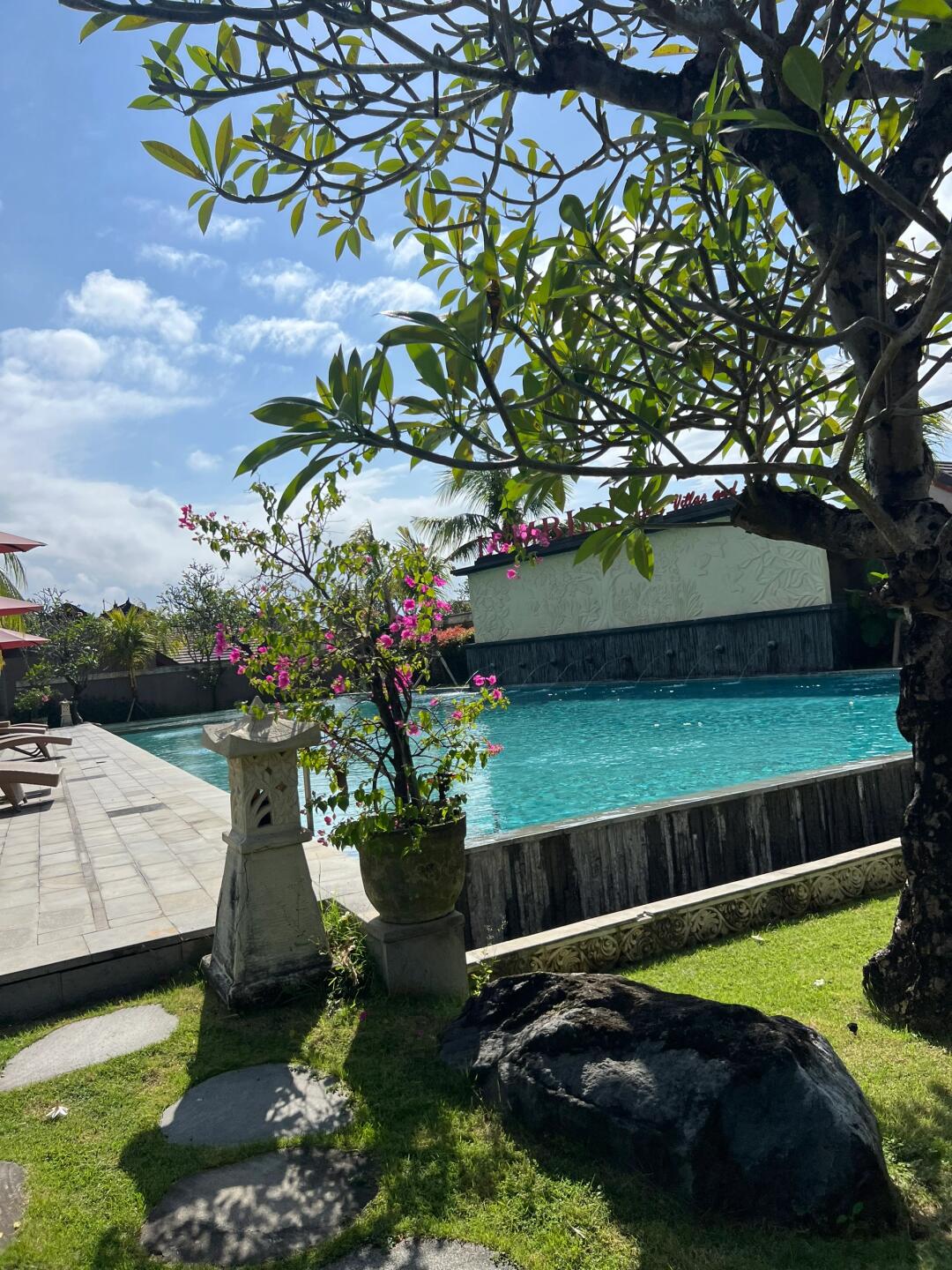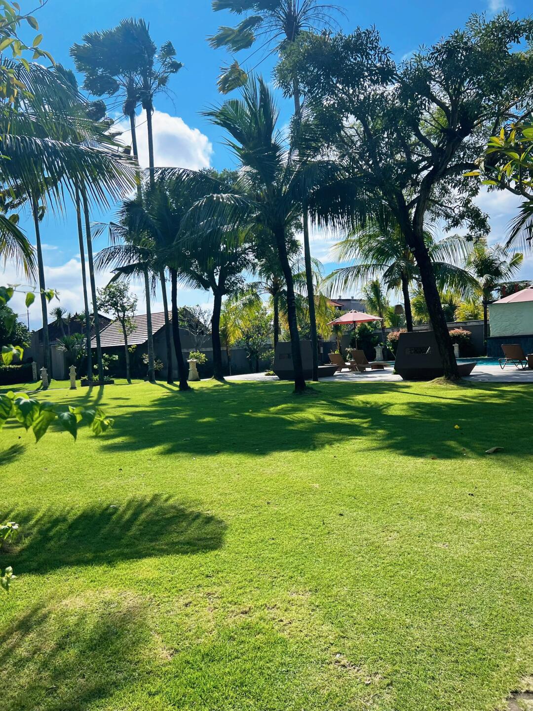 有一个独立的院子感觉还是很棒!离伍拉赖机场打车就十多分钟,很方便!服务也不错,退房可以让摆渡车过来接~唯一这个早餐很一般,但是这个房间还可以也就忍了!