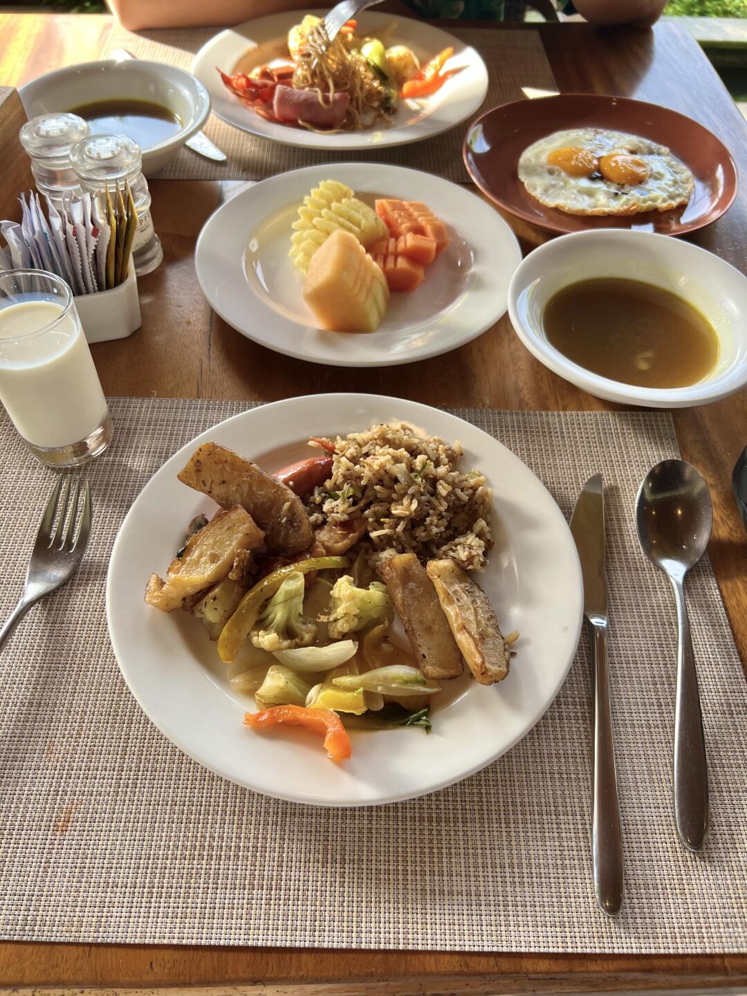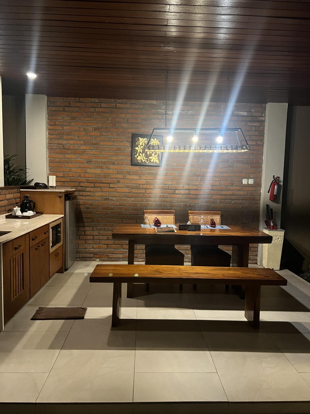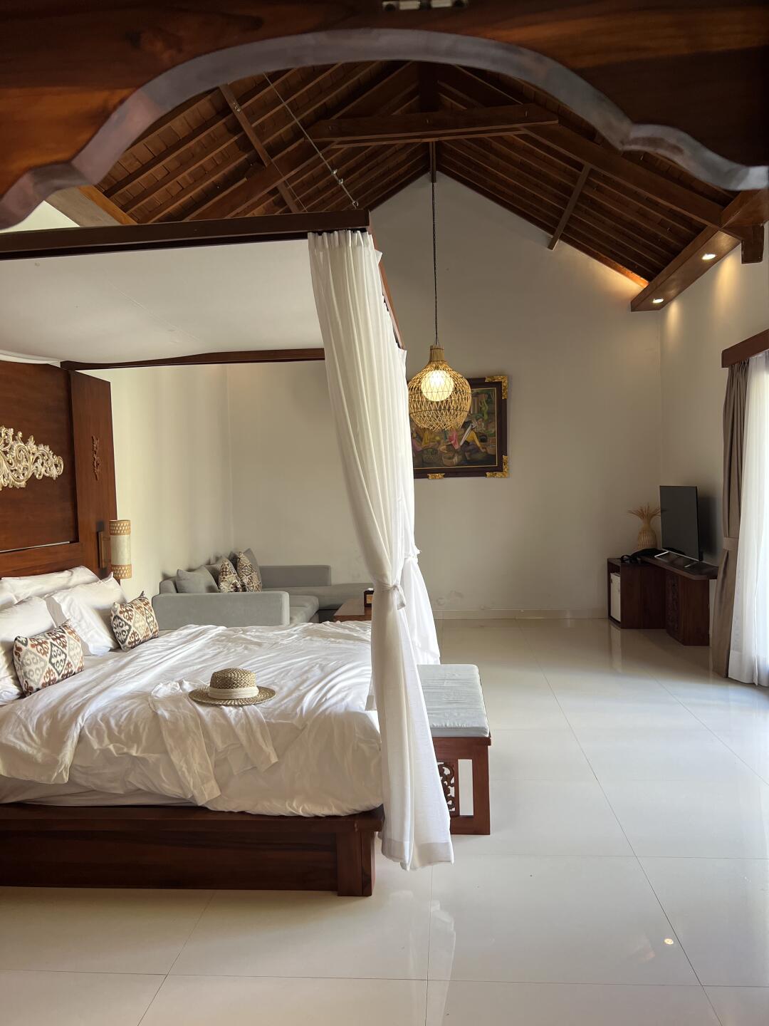 有一个独立的院子感觉还是很棒!离伍拉赖机场打车就十多分钟,很方便!服务也不错,退房可以让摆渡车过来接~唯一这个早餐很一般,但是这个房间还可以也就忍了!