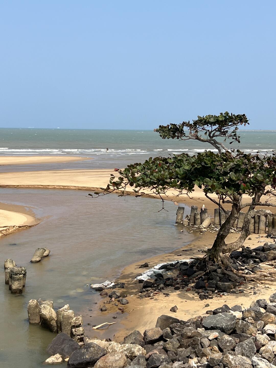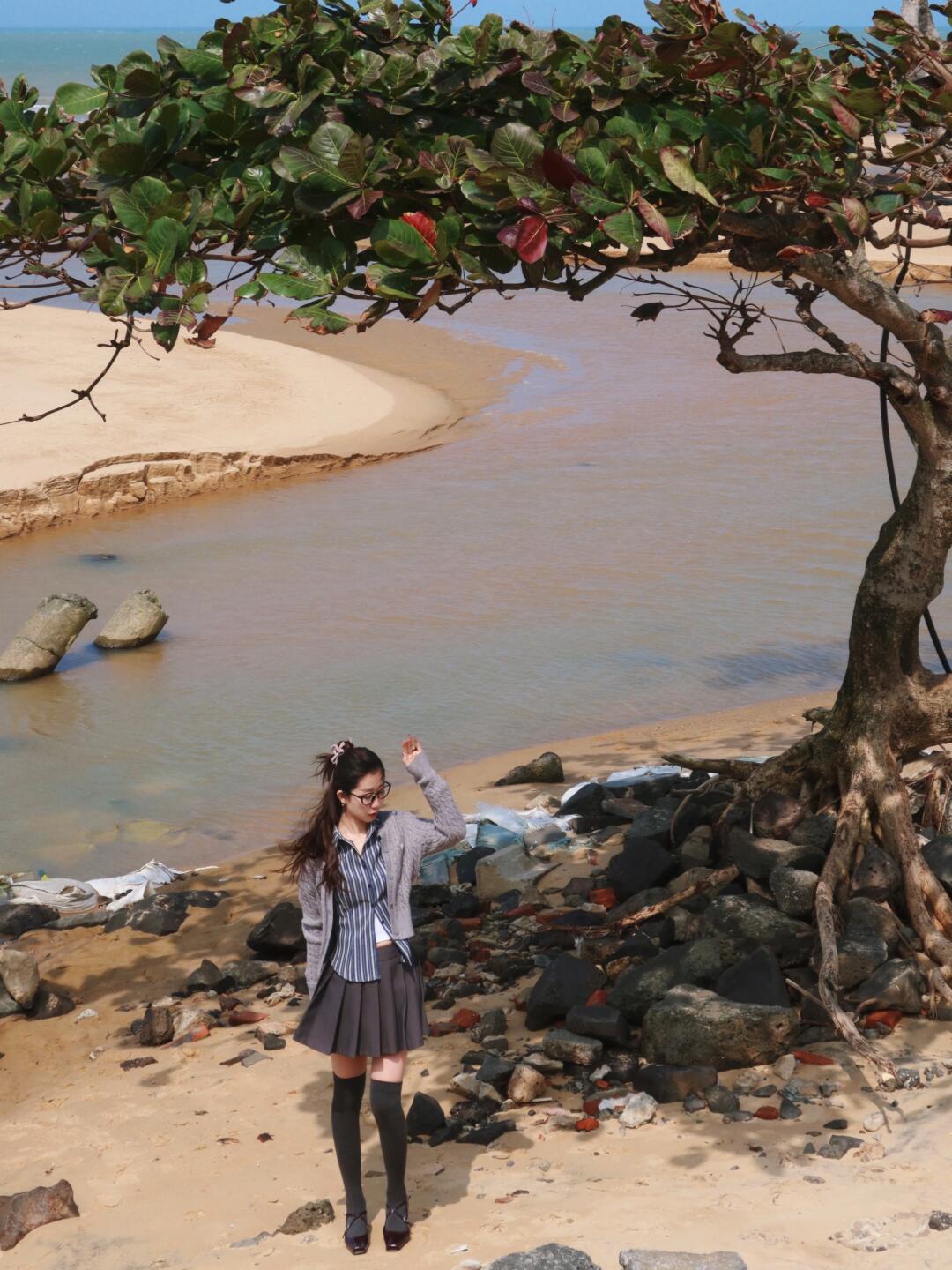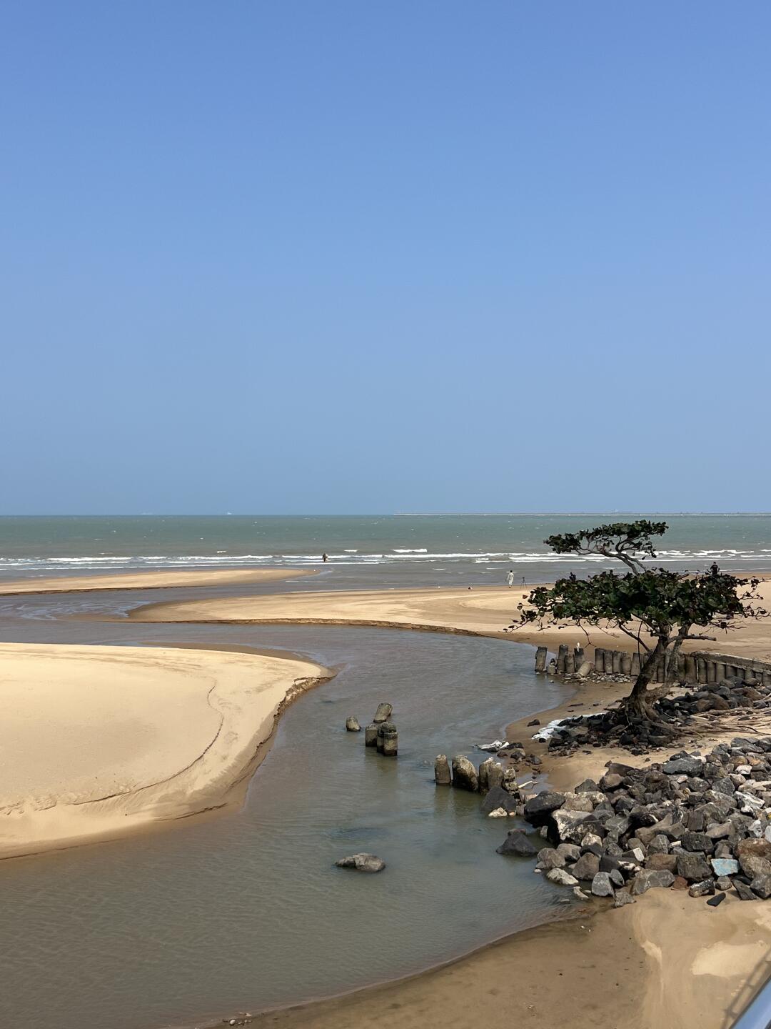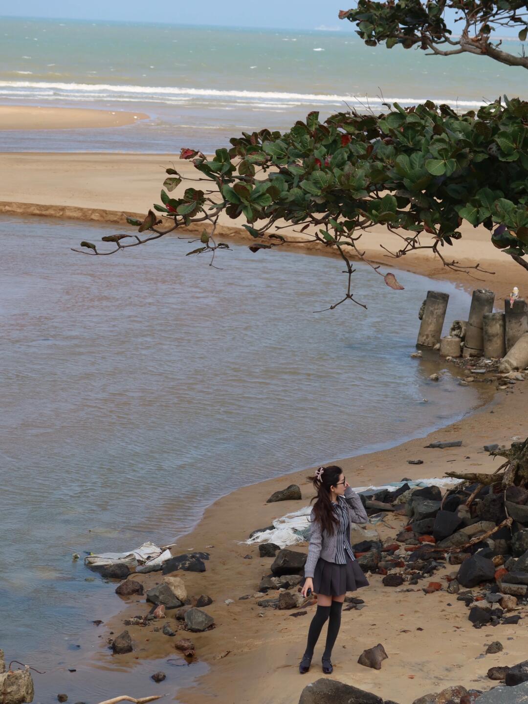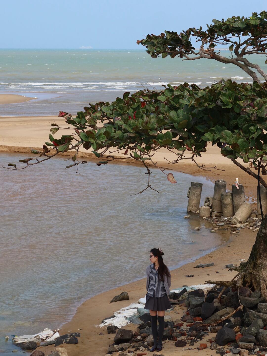 如题,去了这个景点之后发现这棵树是最佳机位📷,很有感觉,海边人很少,😝一点都不打挤~不同的是由于这里是支流汇入大海的地方,不是千篇一律的白沙子,而是土黄色的沙滩,别有一番风味!