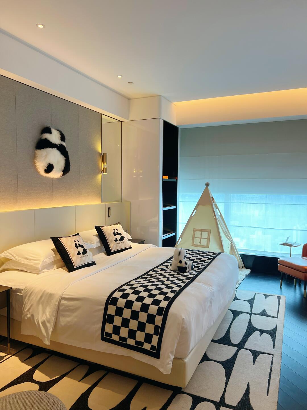 4️⃣有婴儿床跟小帐篷,到处都是熊猫图案,小盆友真的超级爱!