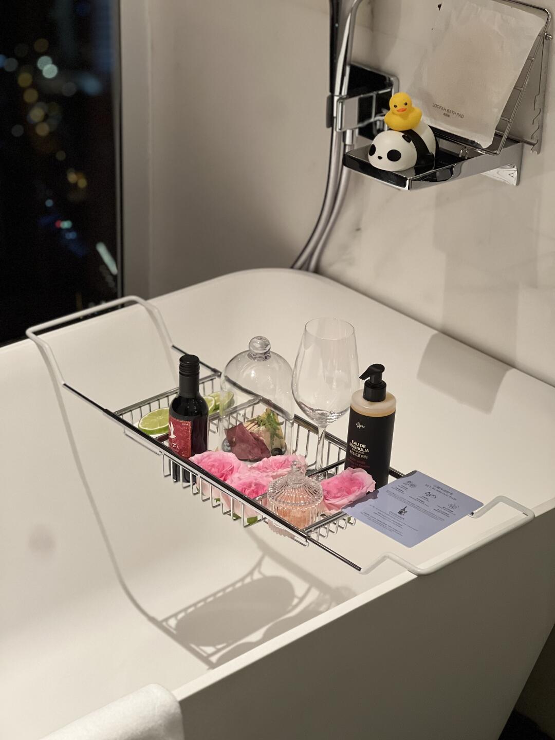 傍晚还会有沐浴时光礼遇,喝着红酒🍷,泡着澡,看着夕阳西下,消除一身的疲惫~太巴适了