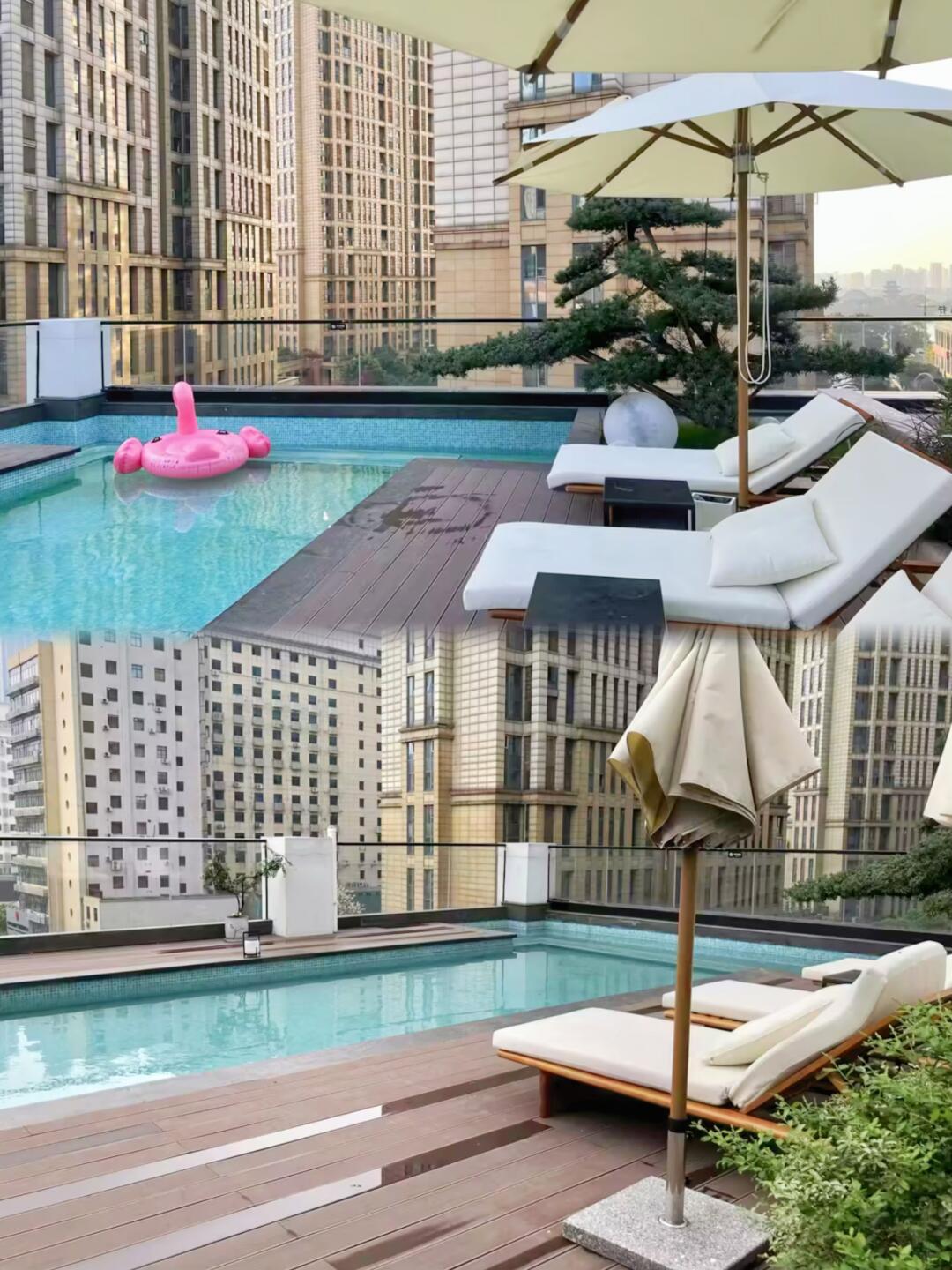 露台泳池🏊正对IFS,傍晚在露台吹着风看夜景,喝杯茶歇的现磨咖啡,舒服到想多待几天。早餐的红烧肉拌粉和糖油粑粑,地道到像在巷子里吃的~