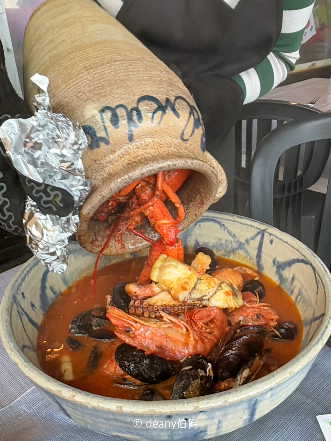 🦑在这里午餐,招牌瓦罐海鲜盅,番茄浓汤,有一只大龙虾还有其他海鲜,味道还不错。