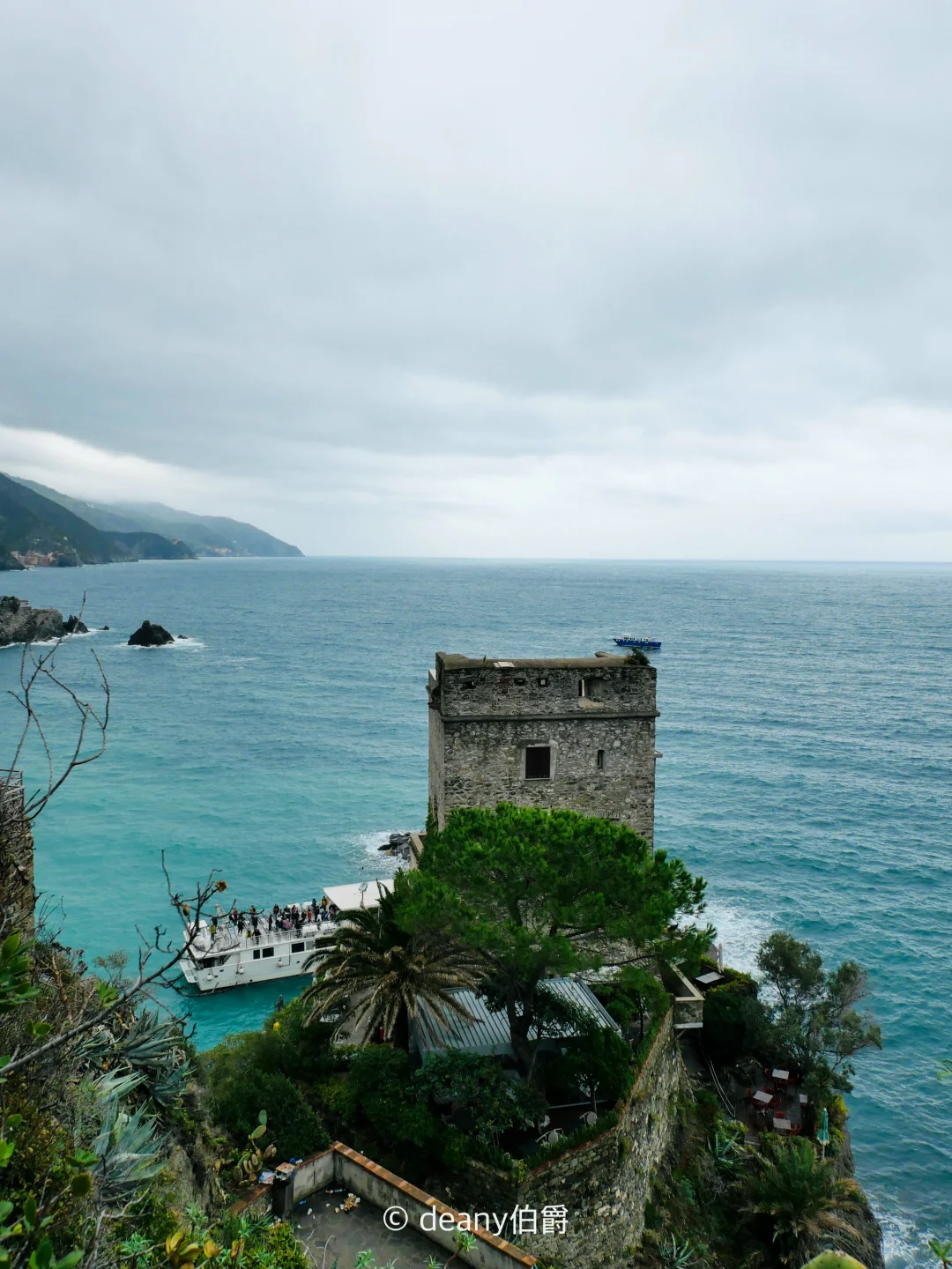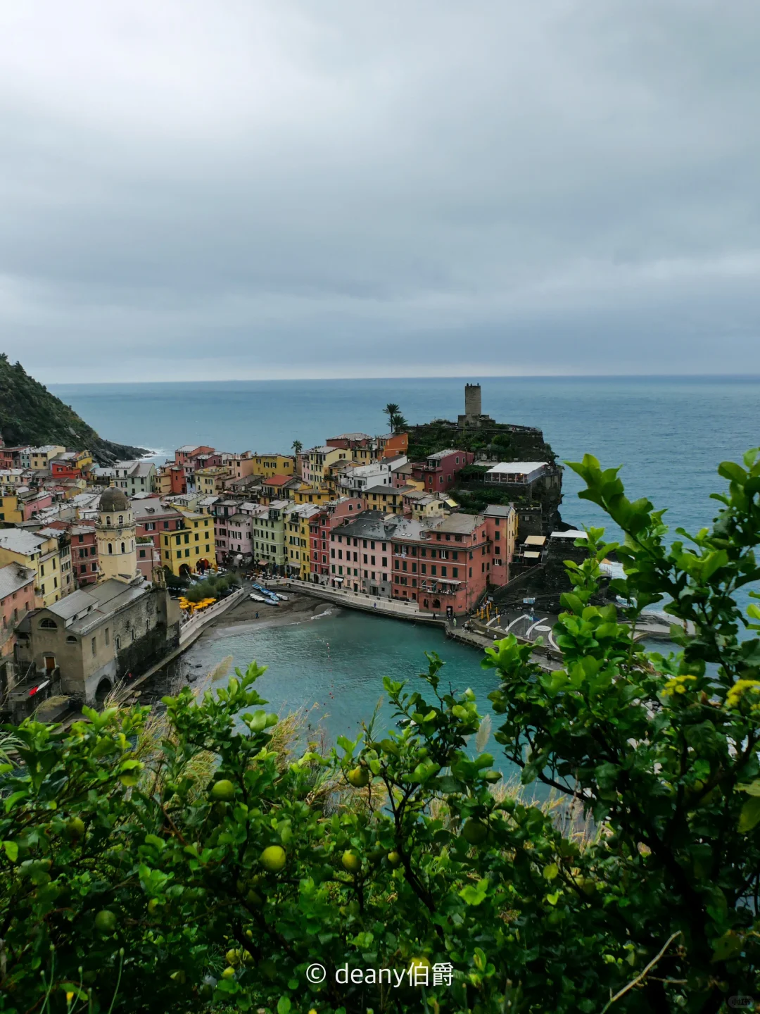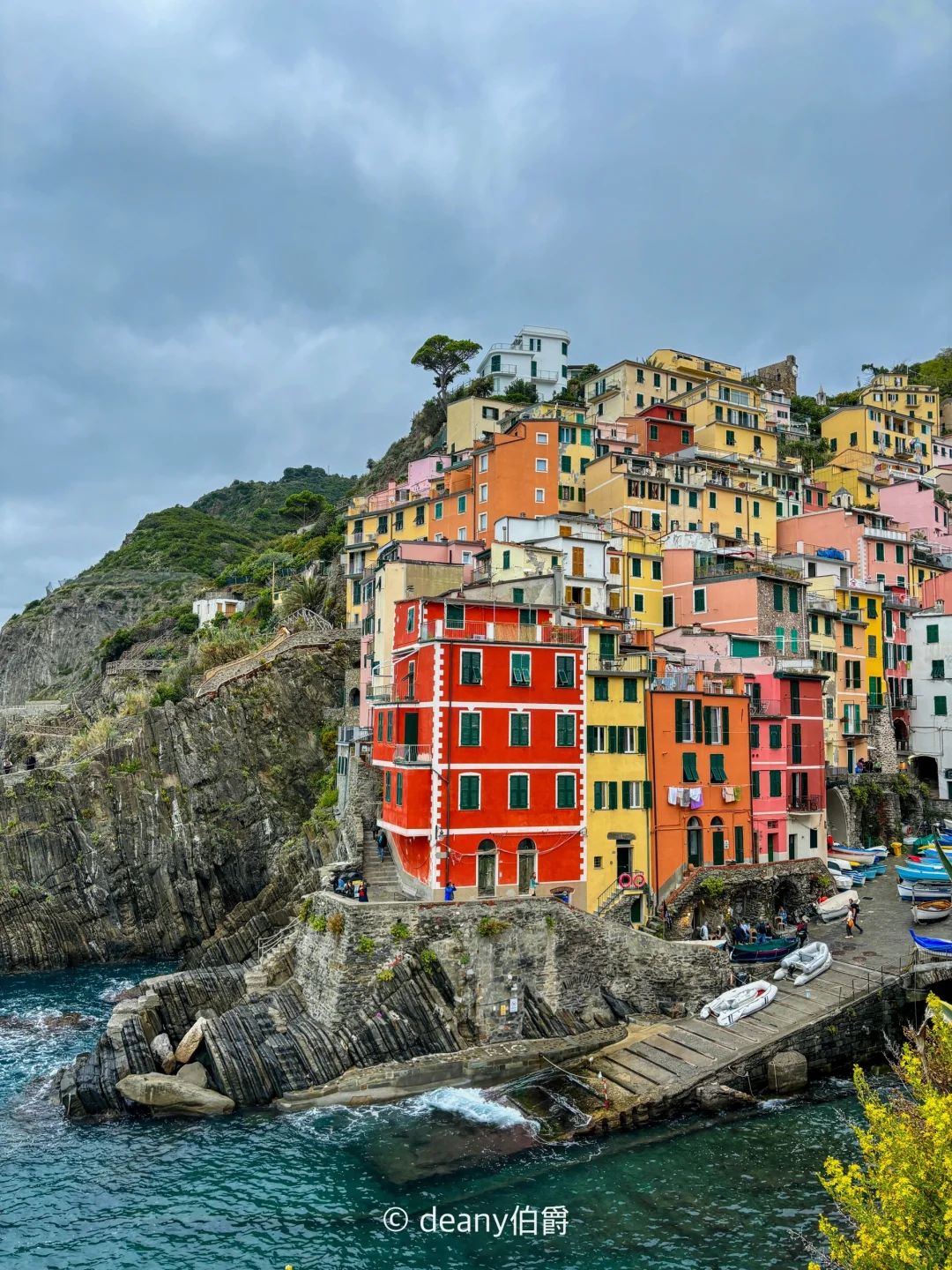 3️⃣马纳罗拉(2村):雨越下越大,阴沉的天色和海面让景色又添几分萧索,和艳阳天的美照真是天壤之别。往下走来到海边,沿着右侧的登山步道上山有一家观景餐厅,可以拍到标志性的角度。