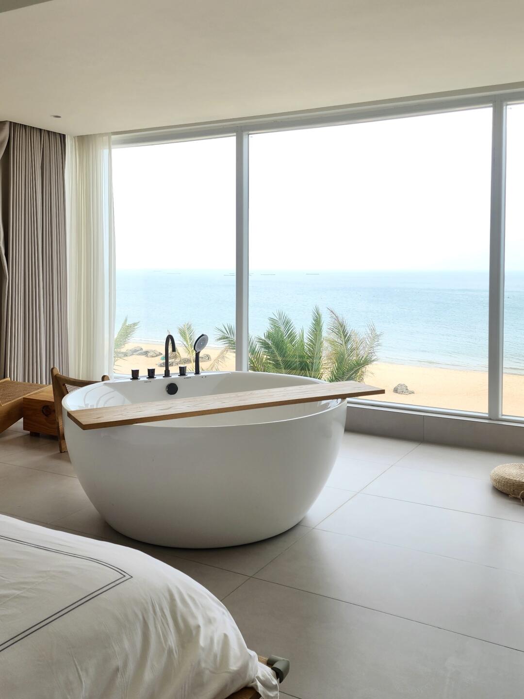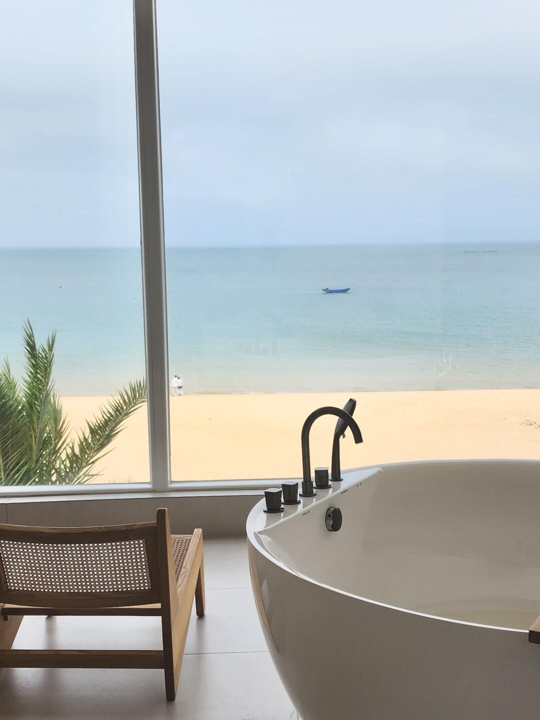 早上拉开窗帘就能看到一望无际的大海对于一个北方人来说真的太幸福了!🥳很庆幸荣山寮这个地方人还不算太多,可以安静的欣赏海景! 我订的这个房间有大浴缸,晚上泡泡澡🛁,早上起来看看海景,很快乐,一楼还有玻璃咖啡厅,有小太阳的时候太惬意了,📷拍照很好看! 周边有一些特色的小店可以拍拍,早上海边有渔民卖海鲜,可以买了在路边的店里加工! ‼️这里离cdf免税店只有4公里左右,很方便~ 🚩店名:屿夕轻奢海景民宿 🩵地址:海南省海口市秀英区西秀镇荣山寮村158号