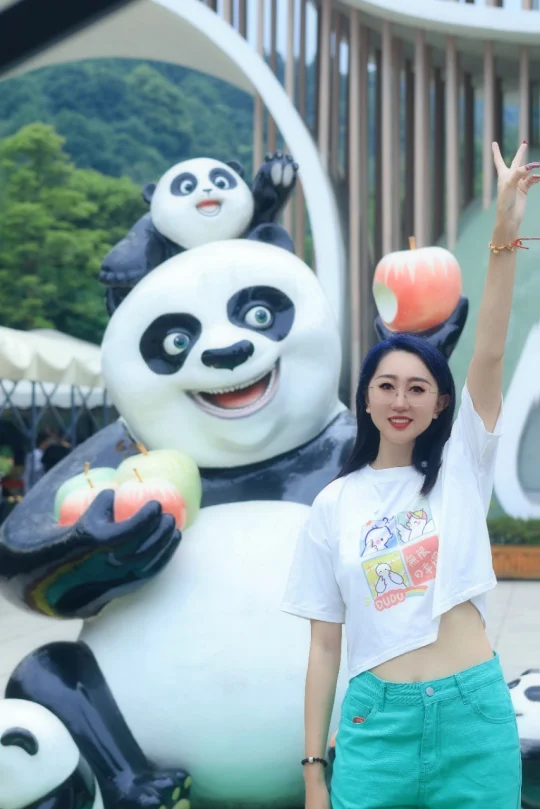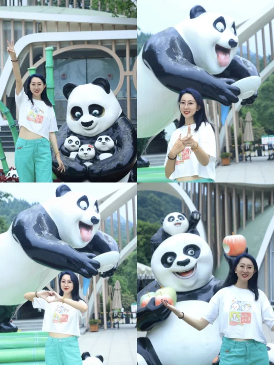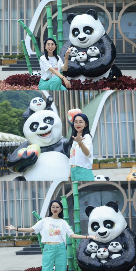 ⭐熊猫雕塑群:与抱娃熊猫雕塑合影