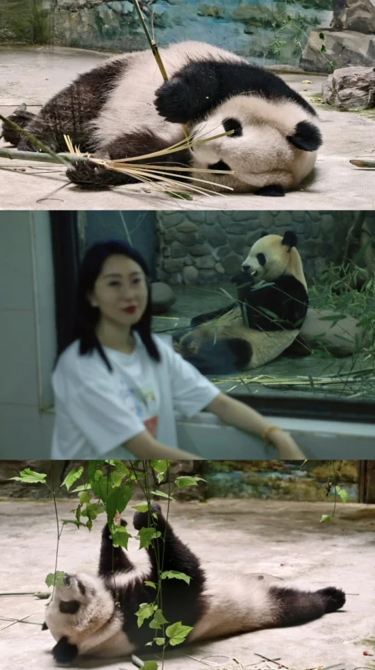 🐾 1 号别墅:看亚成年熊猫 "启航"" 勇勇 " 抢竹笋打闹