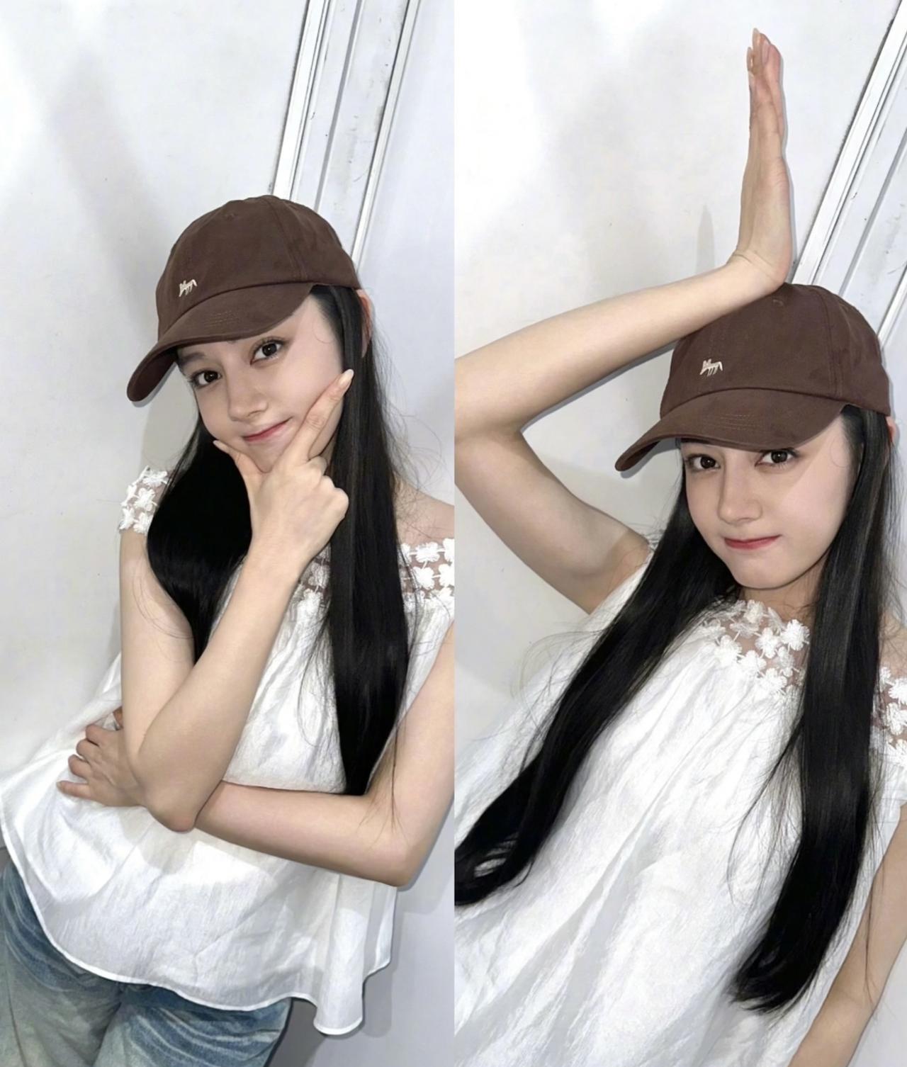私底下的迪丽热巴蛮可爱的,穿衣很有少女感! 她的配色很多都是简单,但是单品会很有设计感。比如这一次的一字领白色上衣,肩膀做了立体碎花的拼接,更加的甜美温柔。 搭配牛仔裤和棒球帽很街头休闲,非常的有少女感,超减龄!