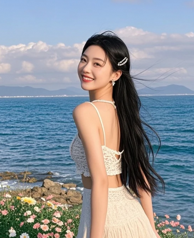 波光粼粼闪烁,映照她内心澄澈的喜悦