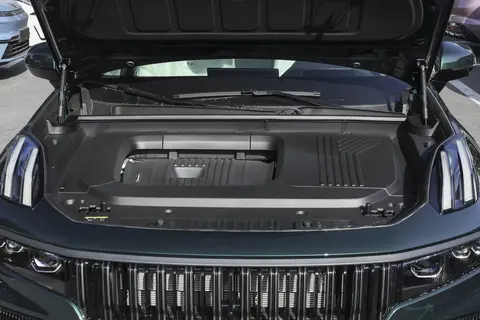 真正的精髓在于它的底盘和四驱系统。前双叉臂、后集成式多连杆独立悬架,并且悬架中铝制部件占比高达48%,这使得车辆在保持结构稳固的同时,操控更为精准,行驶质感也更为安静。一个有趣的细节是它采用了复合叶片弹簧“绿扁担”,这是领克的自研技术,由玻璃纤维和聚氨酯高压注塑而成,不仅耐腐蚀,还能提供更强的侧倾刚度,提升过弯时的稳定性。