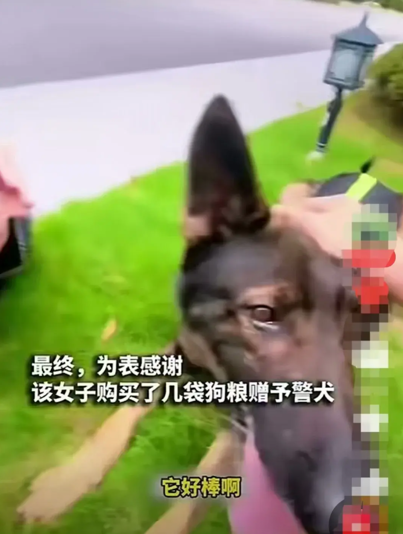 丢戒指的女士为了表示感谢,特意买了几袋狗粮赠予警犬表示感激之情。