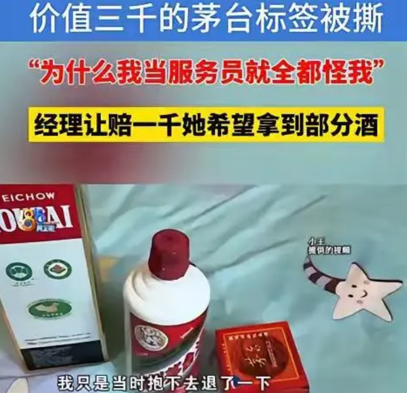 结果没过多久,经理突然找她谈话,说那瓶茅台盖上的红色标签被撕掉。