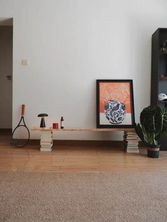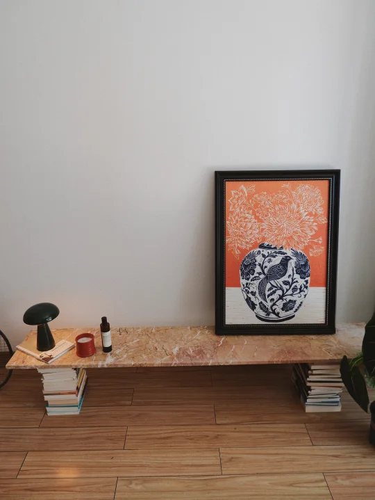 因为不放电视,沙发对面一直空空的。最近刷看到用木板自制置物架,但是家里木元素已经太多了,所以选了大理石做。 联系了当地石材市场的商家,告诉他们尺寸要求后问问有没有现成的“边角料”可以用,惊喜低价买到美丽石材。可以让商家在板背面加一条加固钢筋避免开裂。