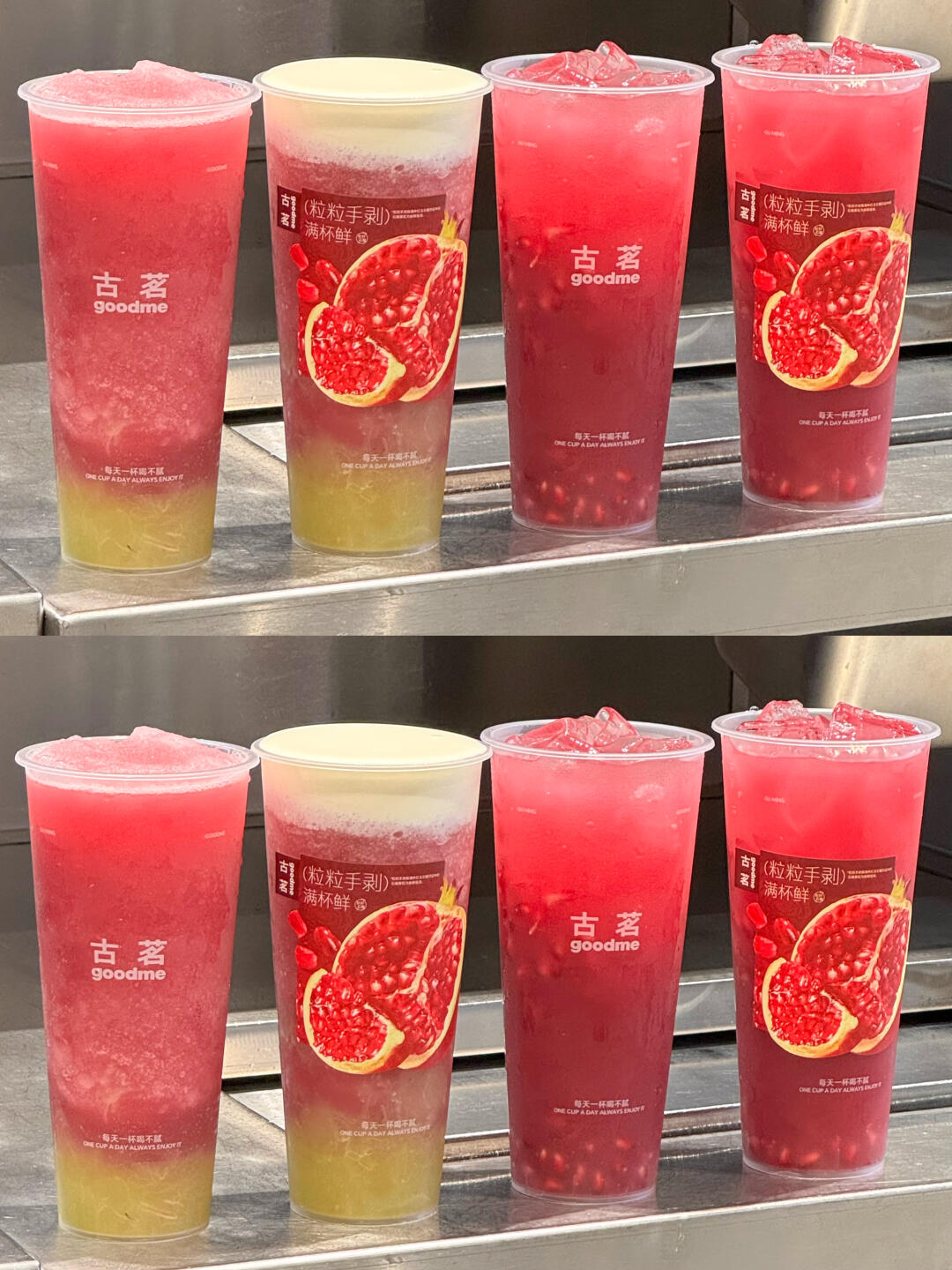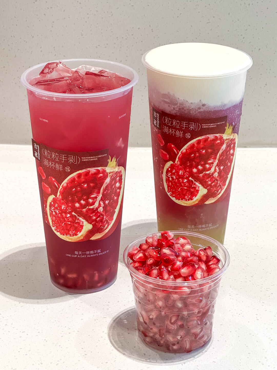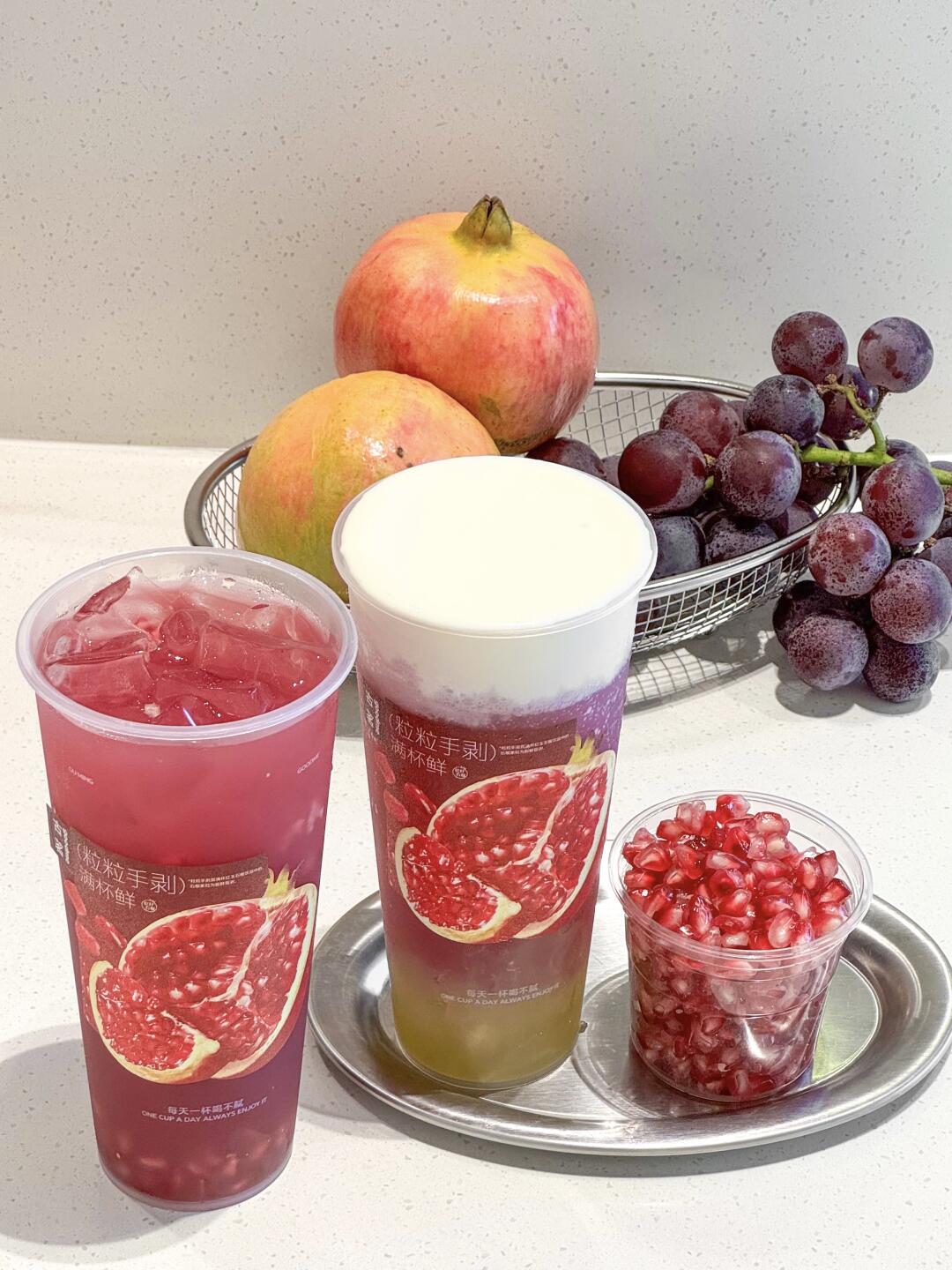 吃石榴不用剥!古茗给你剥!! 是谁还没喝!古茗一年只卖一季的石榴系列🤤!! 今年的石榴含量比去年还多!!!这不得赶紧冲!! ✔满杯红玉石榴 石榴都是店员每天现剥的!刚进门就看见店员在kuku剥石榴,难怪每一口都能喝到和水果店一样的新鲜感!石榴果香和茉莉花香融合 一口爆汁 边喝边嚼的快乐sei懂啊! ✔红玉石榴葡萄 冰沙脑袋选这款!石榴汁和茉莉花茶混合达成沙冰 加上大颗的葡萄果肉 酸甜口感冰冰凉凉 推荐再加了一份奶盖,口感更丰富噢~