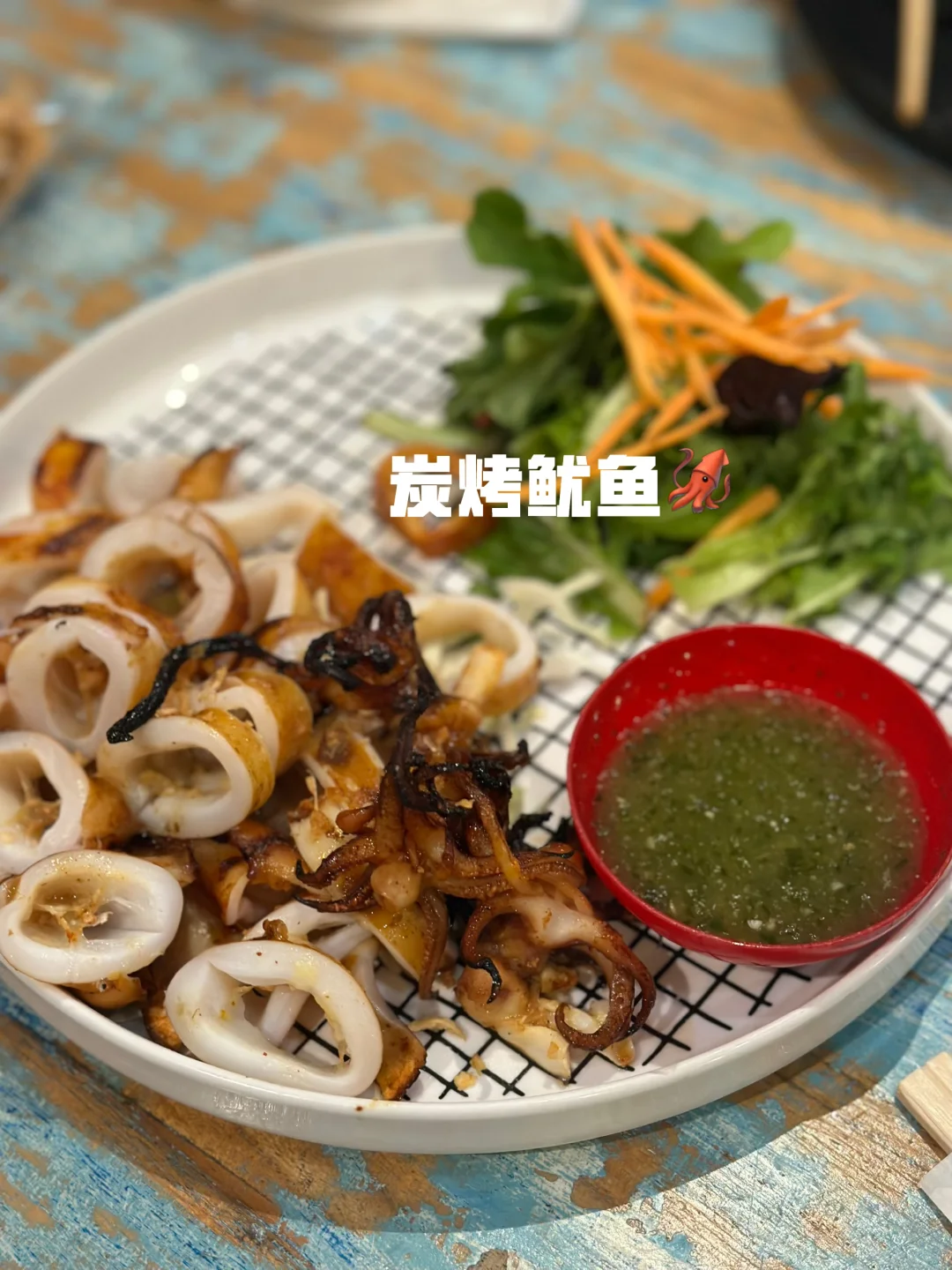 🦑 烤鱿鱼 —— Q弹爽口,搭配泰式酱汁+小沙拉,健康又开胃。