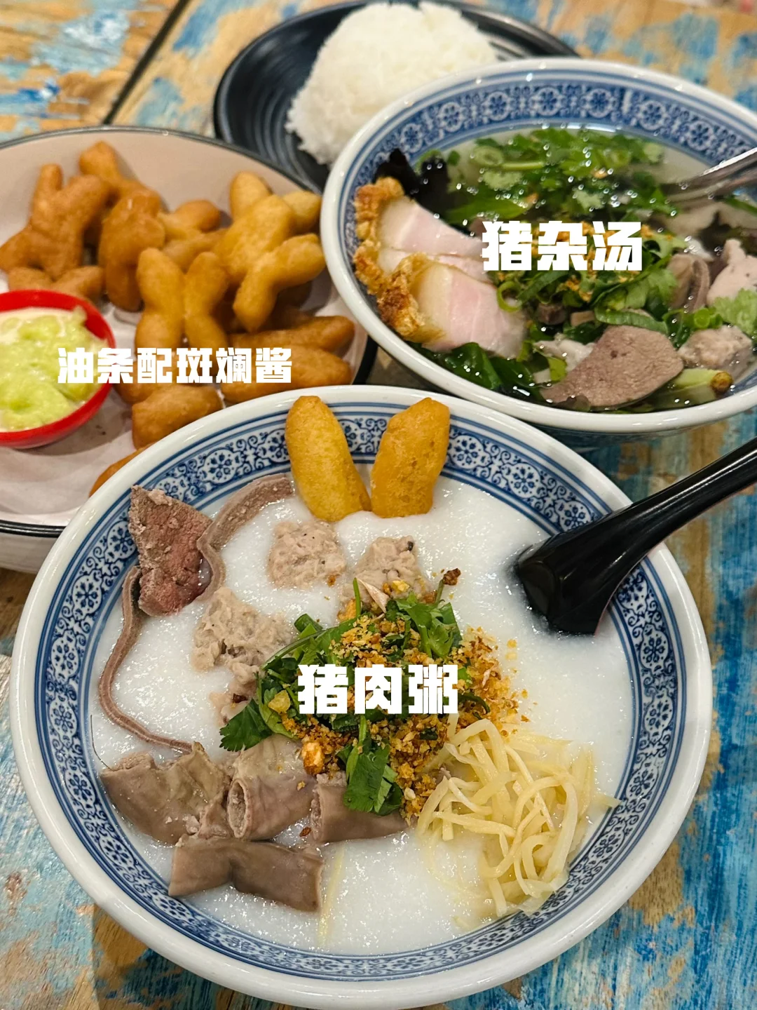 🍲 猪肉粥 —— 绵密顺滑,肉丸、五花肉、大肠、猪肝都有,蛋白质和碳水兼顾,饱腹感很强。