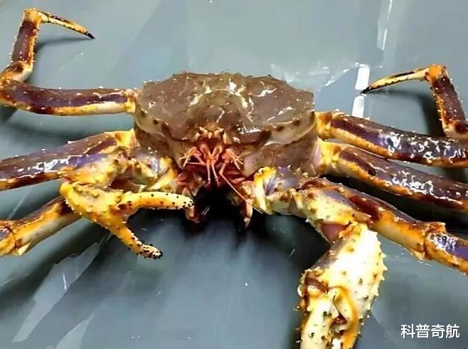 虽然名字里有一个蟹字,但帝王蟹并不是螃蟹。它的学名叫做“堪察加拟石蟹”,属于“歪尾下目”。简单来说,帝王蟹是“假螃蟹”,它比真螃蟹少一对足,而且最后一对足特化成了小钩子,藏在腹部,平时用来抓着海底岩石。