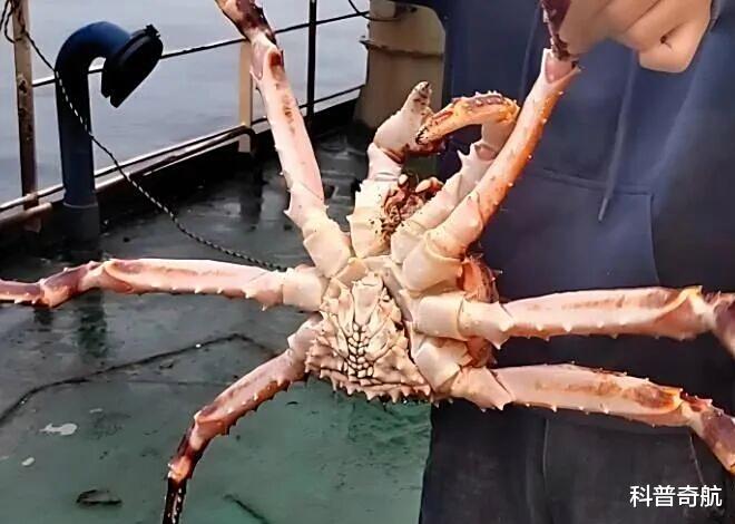 成年帝王蟹的腿展能到1.8米,体重普遍超过5公斤,最大的记录是17公斤,光一只蟹腿就有2斤重。之前,我在海鲜市场见过解冻的帝王蟹,蟹壳比家里的炒菜锅还大。