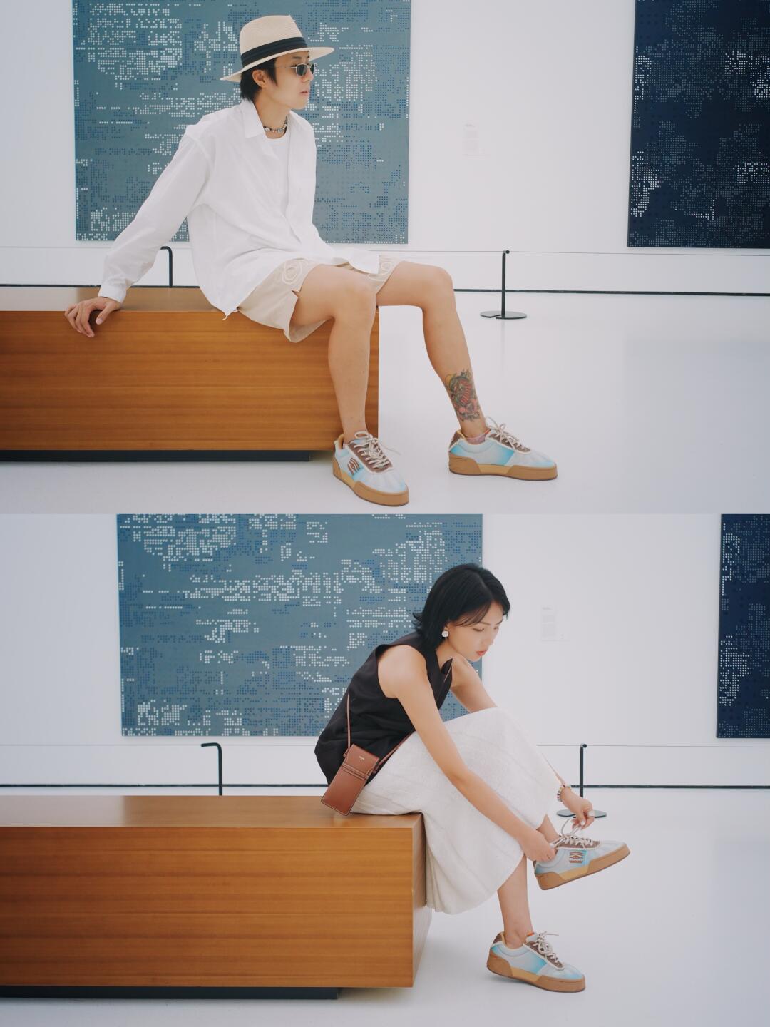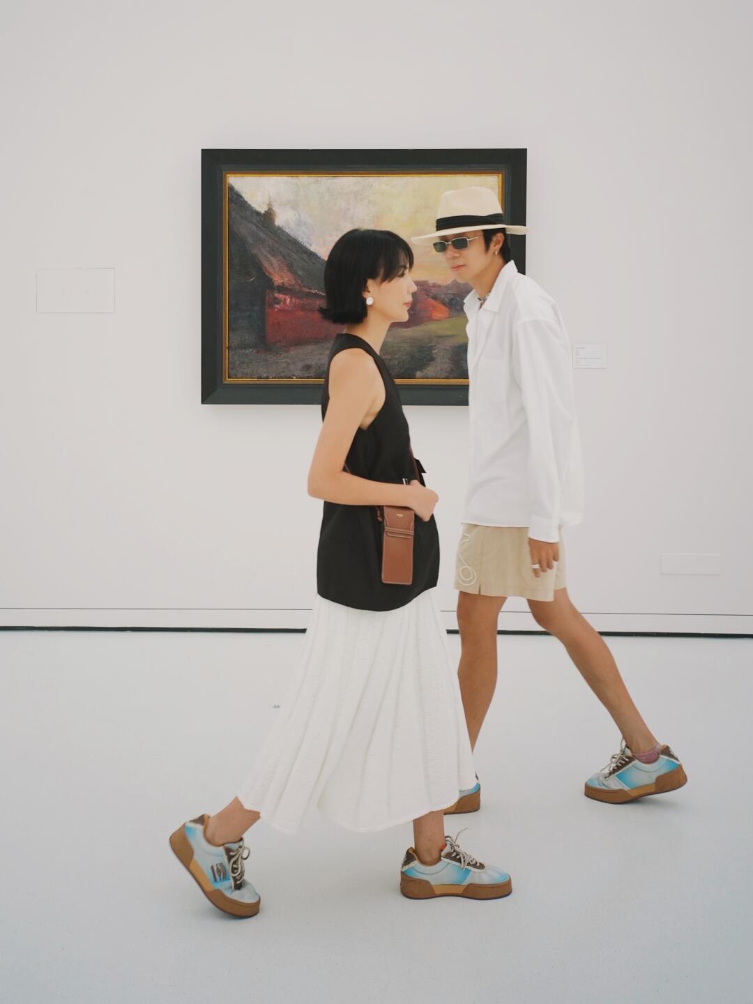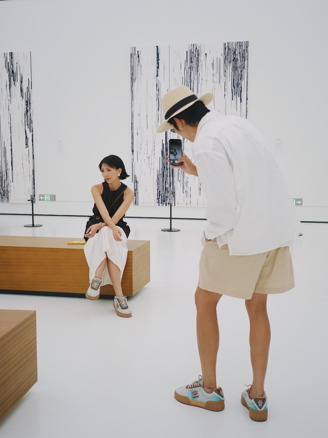 跟小燕一起过过数不清的情人节 看过了各种热闹,今年七夕想过得松弛点😆 最近听说在白鹅谭有威尼斯国际艺术双年展 躲进展览馆,既避暑,又安静😁 - 不赶时间地逛完所有展厅 看画时分享自己的想法 慢慢逛到夕阳西下,再散步回家 - 今天两人穿的安踏欧文板鞋,OCEAN EYES蓝白渐变色自然晕染,👀眼睛图腾充满艺术感,意外地与展览搭上 是今天情侣穿搭的巧妙细节😉